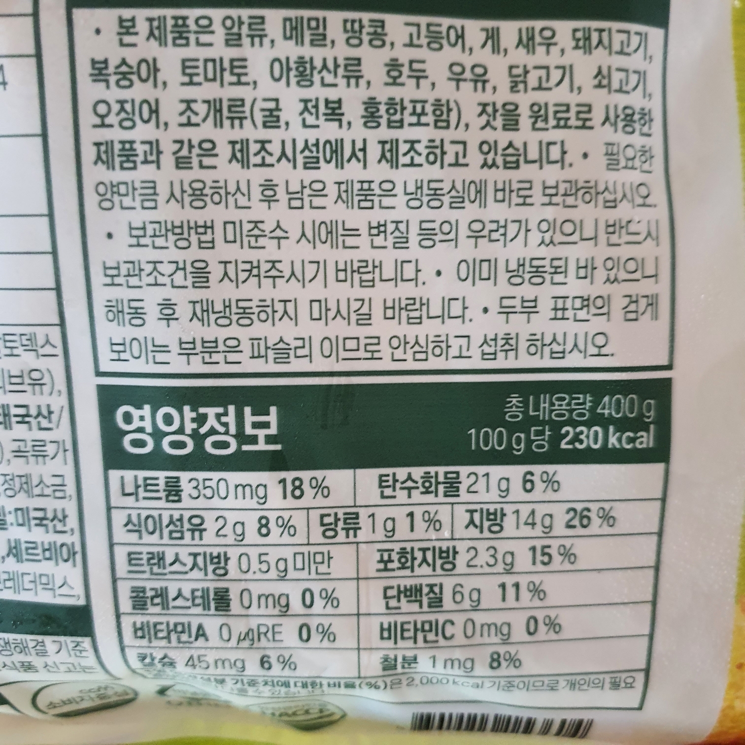 뒷면에 풀무원 두부스틱 관련 설명이 많이 있네요