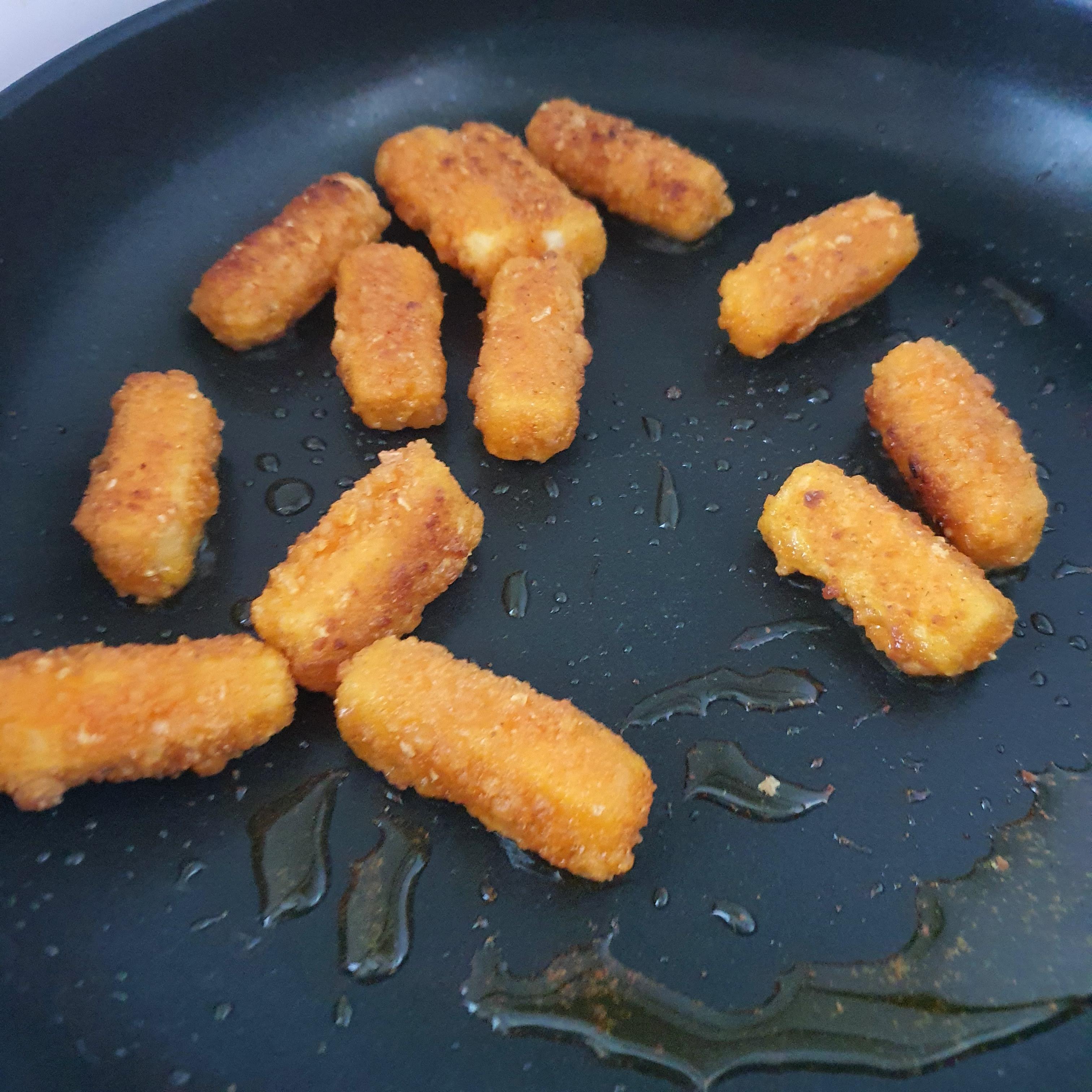 에어프라이어 대신 프라이팬에 기름을 두르고 구웠습니다