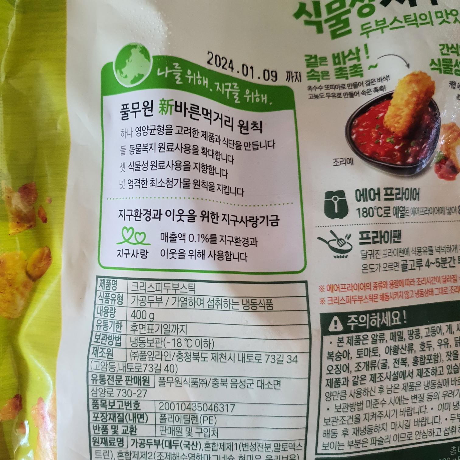최근 이마트 채식주의 코너에서 크리스피 두부스틱 구매했습니다