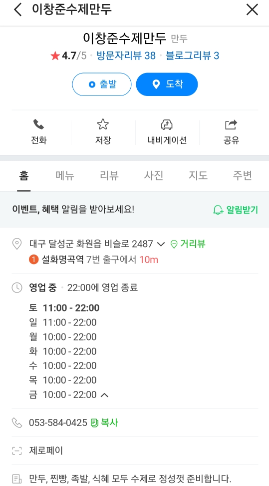 대구 달성군 화원읍 도시철도1호선 설화명곡역 앞에 자리한 이창준 수제만두입니다
