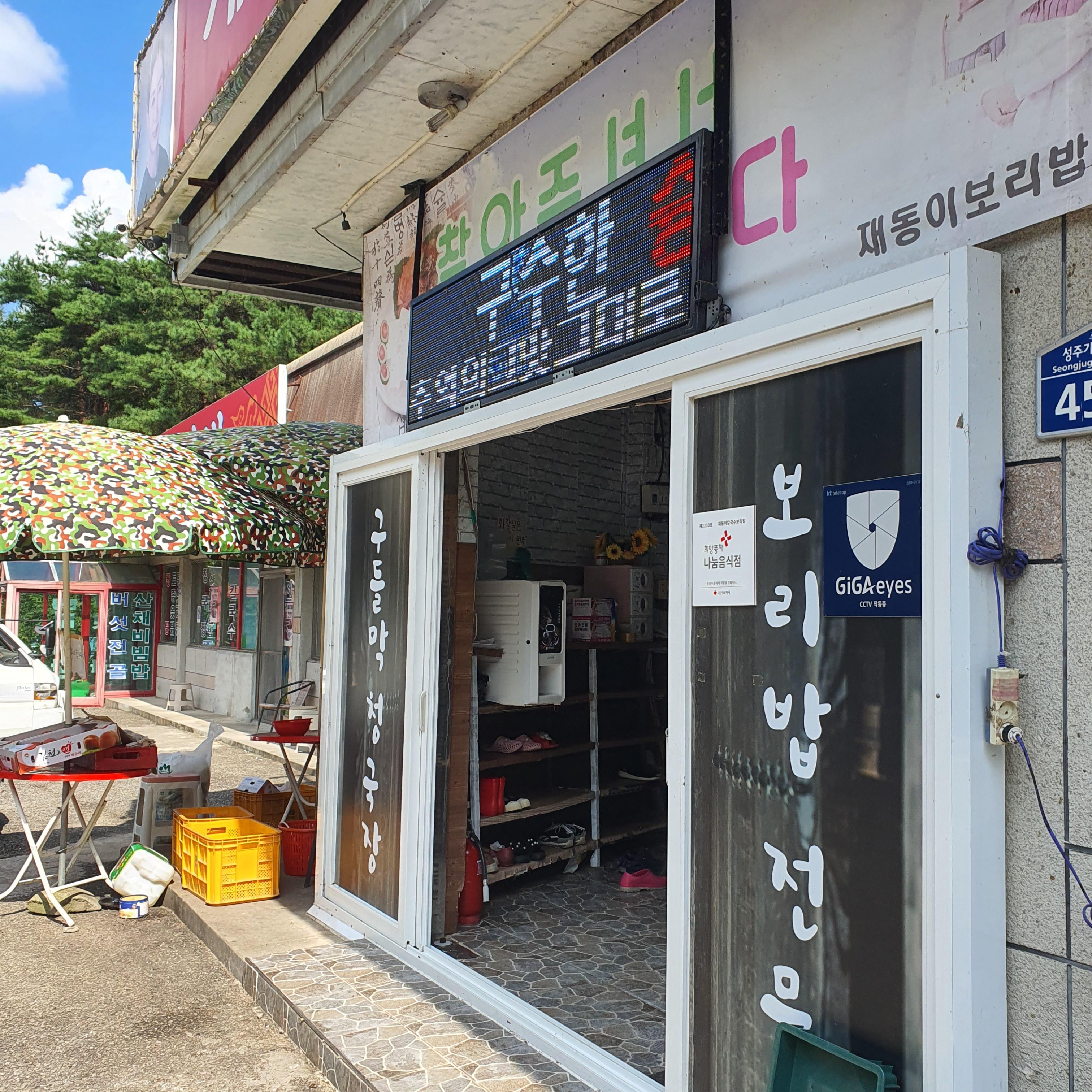 계곡에서 차로 15분 정도 떨어진 곳에 성주 맛집 재동이칼국수보리밥이 있었습니다