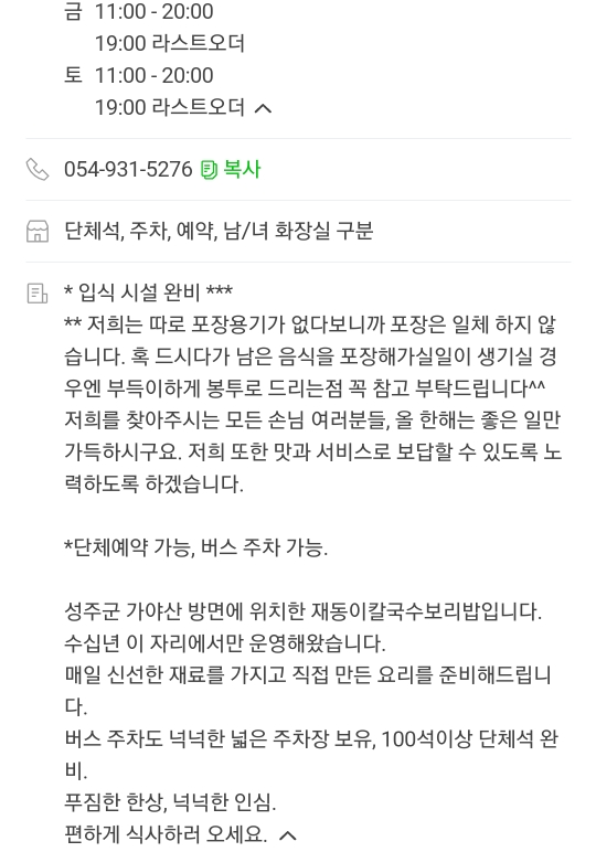 또 칼국수는 안 하는 시간이 있으니 미리 연락해서 확인해 보시길 바랍니다