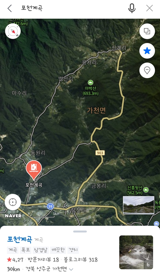 네비게이션에 포천계곡 검색하시면