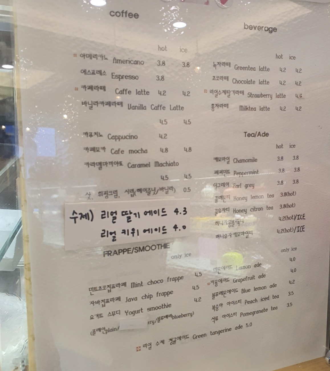 케이크, 빵류에 곁들여 먹을 음료도 판매합니다