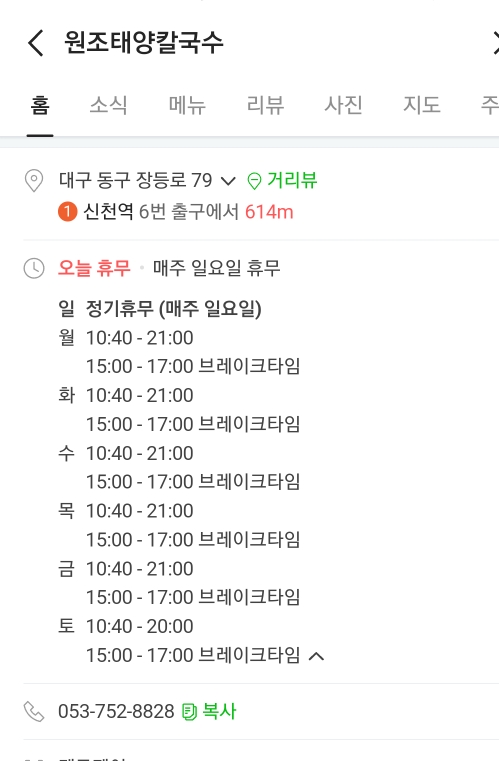 대구 동구 신천동 로컬맛집 원조태양칼국수