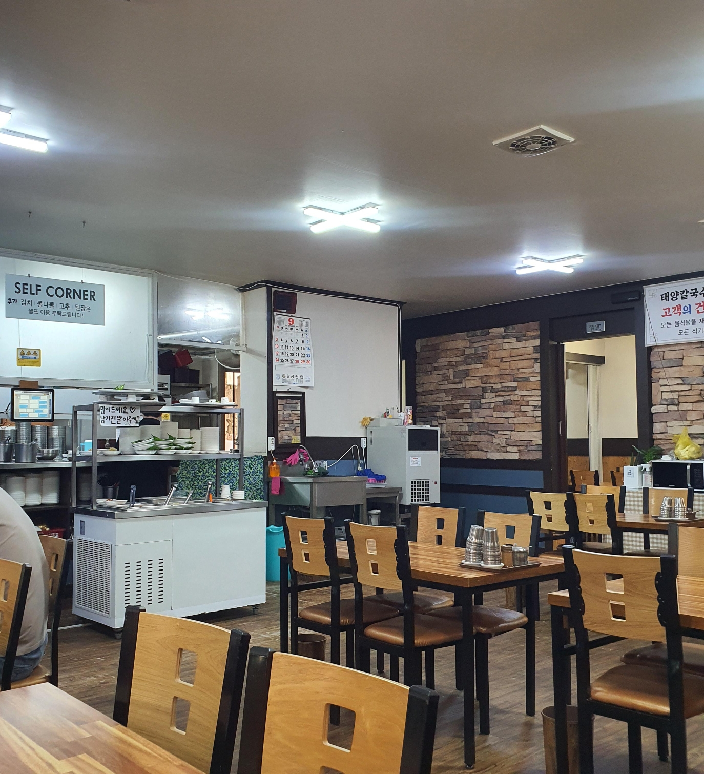 풋고추, 김치, 콩나물 등을 가져다 먹을 수 있는 셀프바가 있어 편리합니다