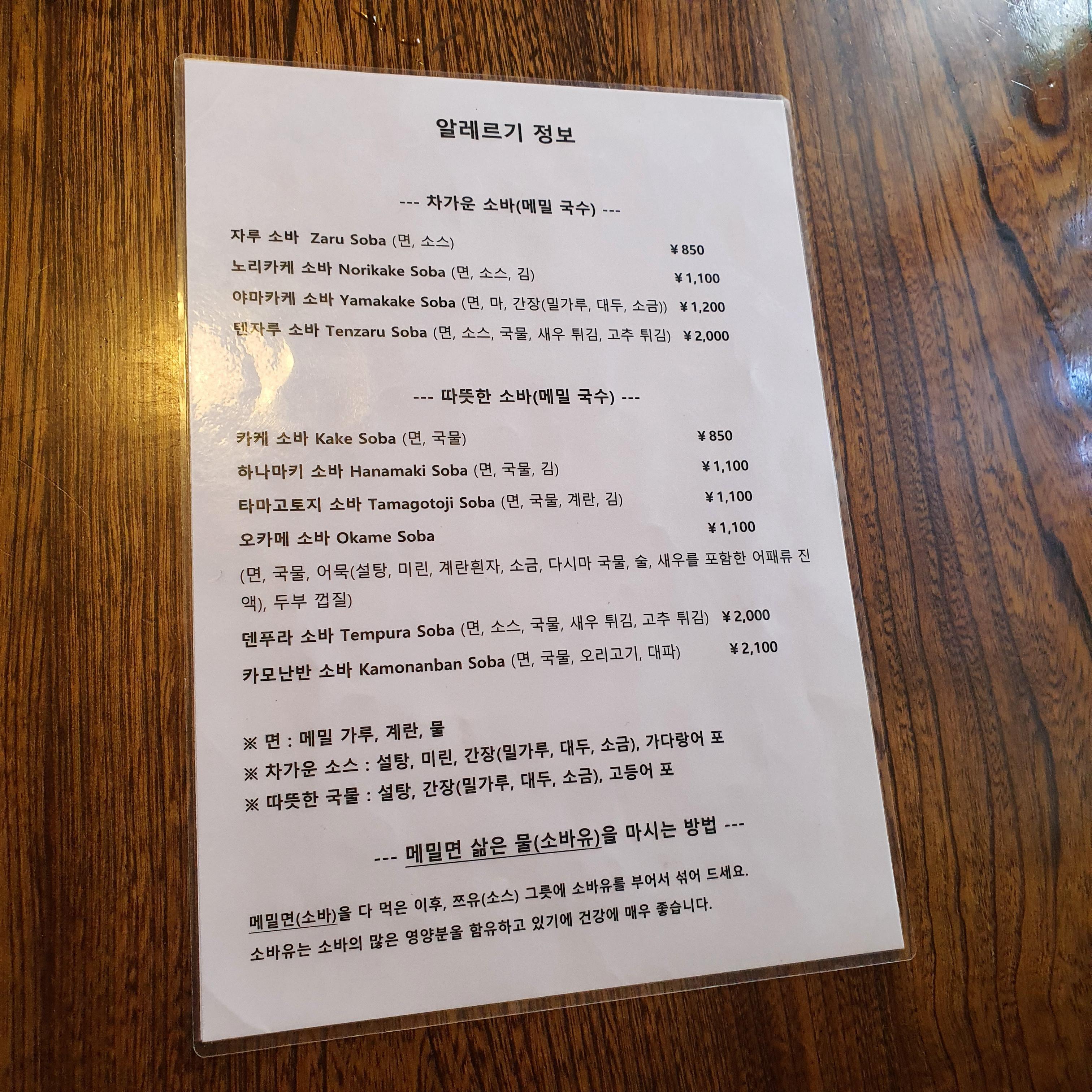 소바는 종류도 많고 이름도 어렵고, 일식을 잘 모르는 사람들은 어려울 수 있겠습니다