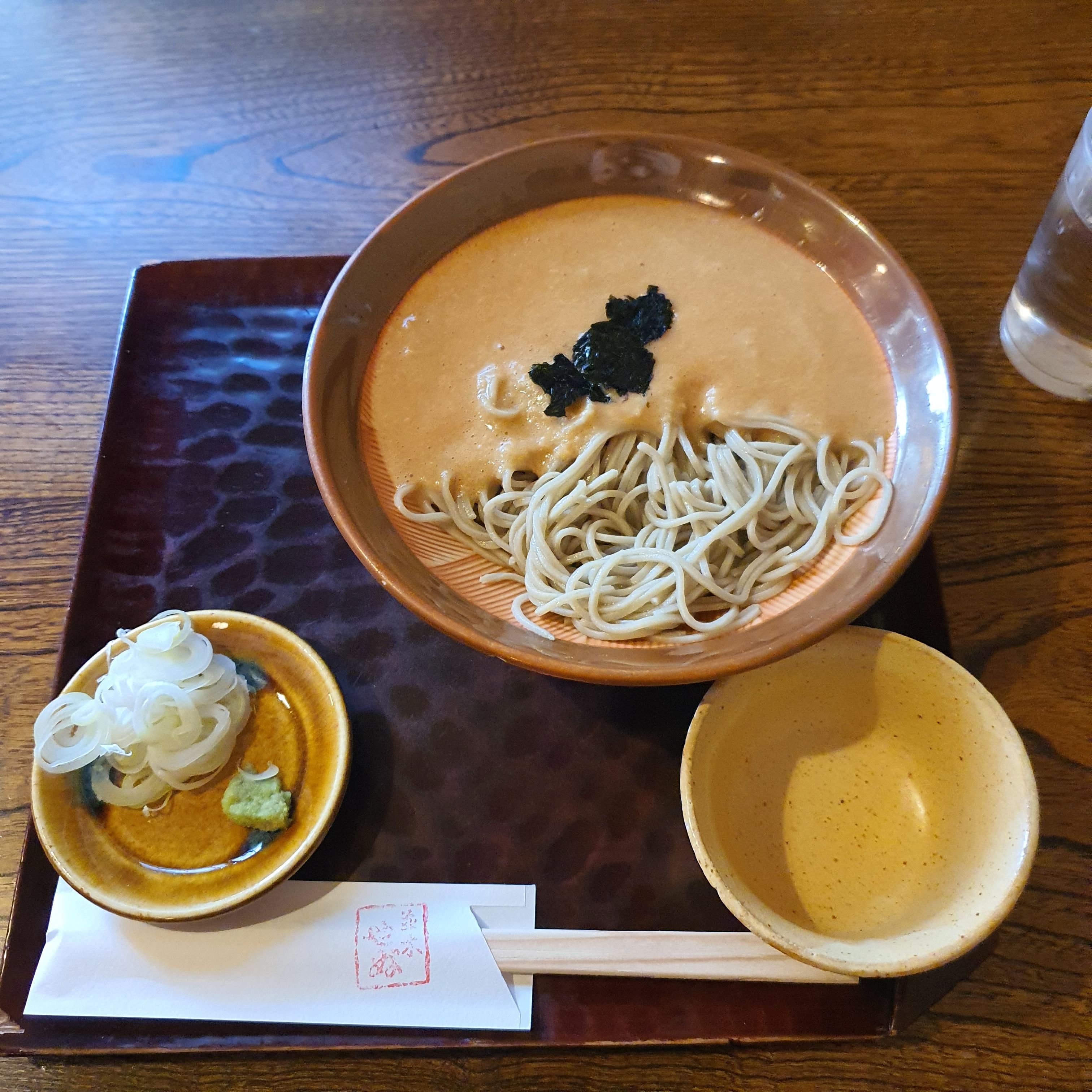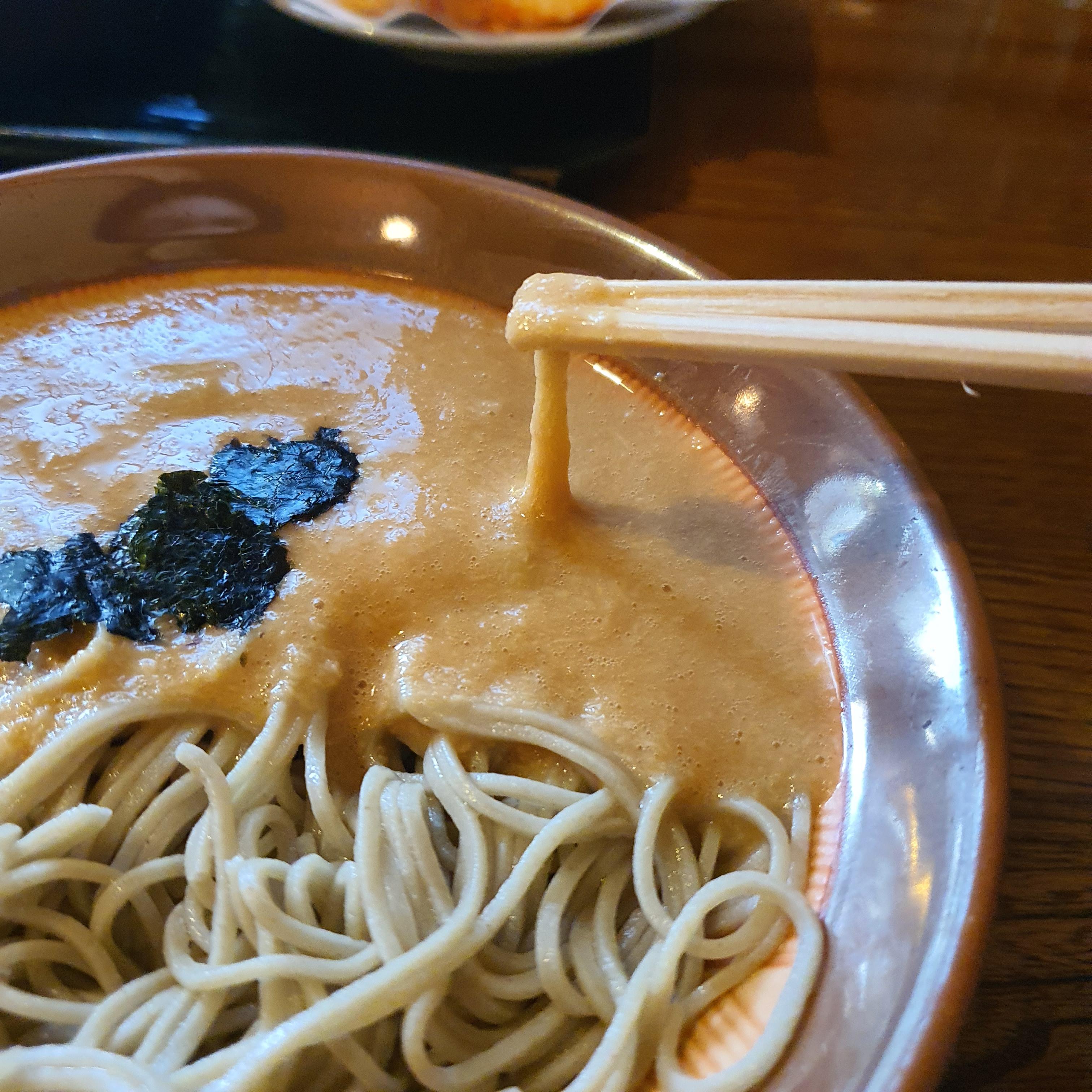 저는 마를 끈적하게 갈아 얹은 소바를 주문했습니다
