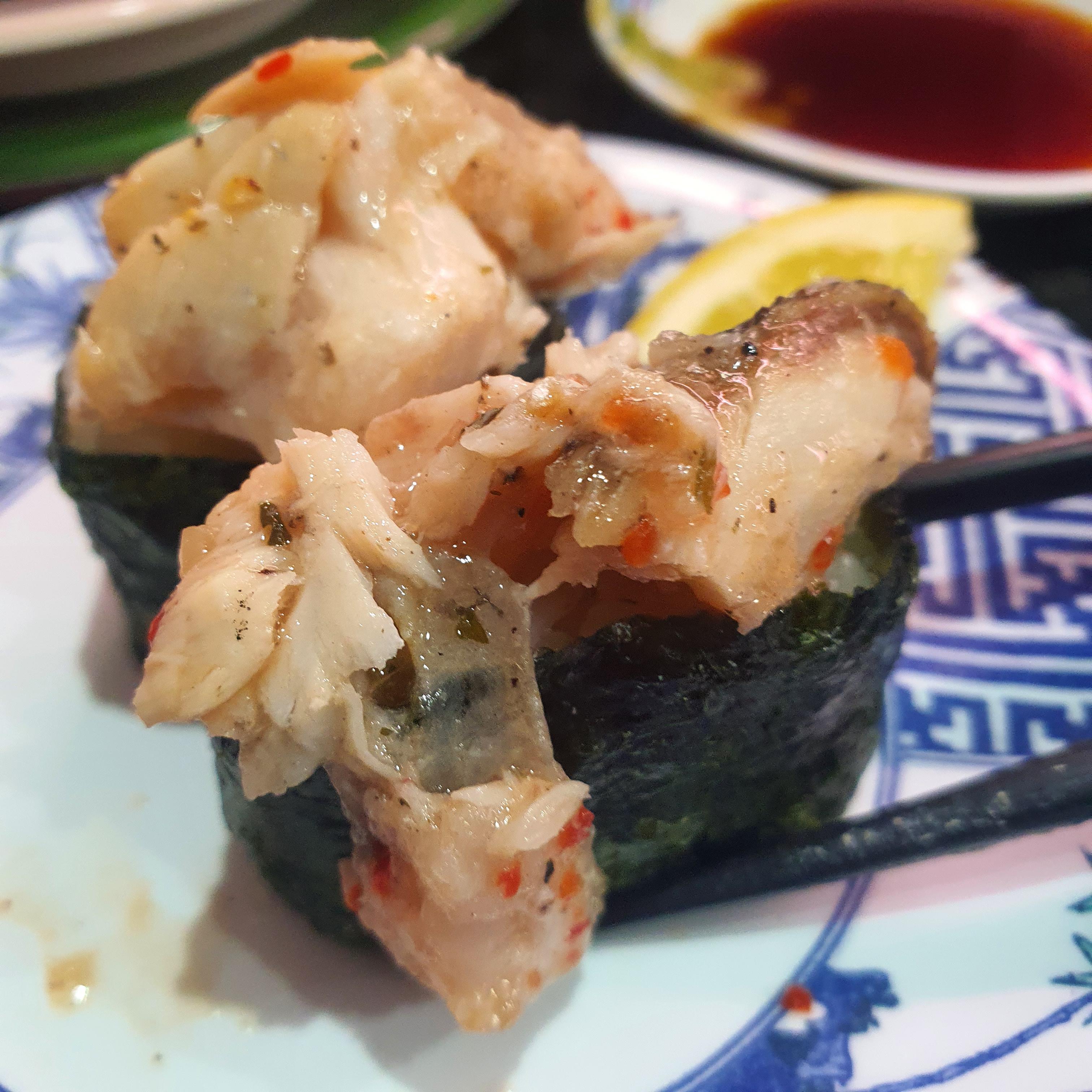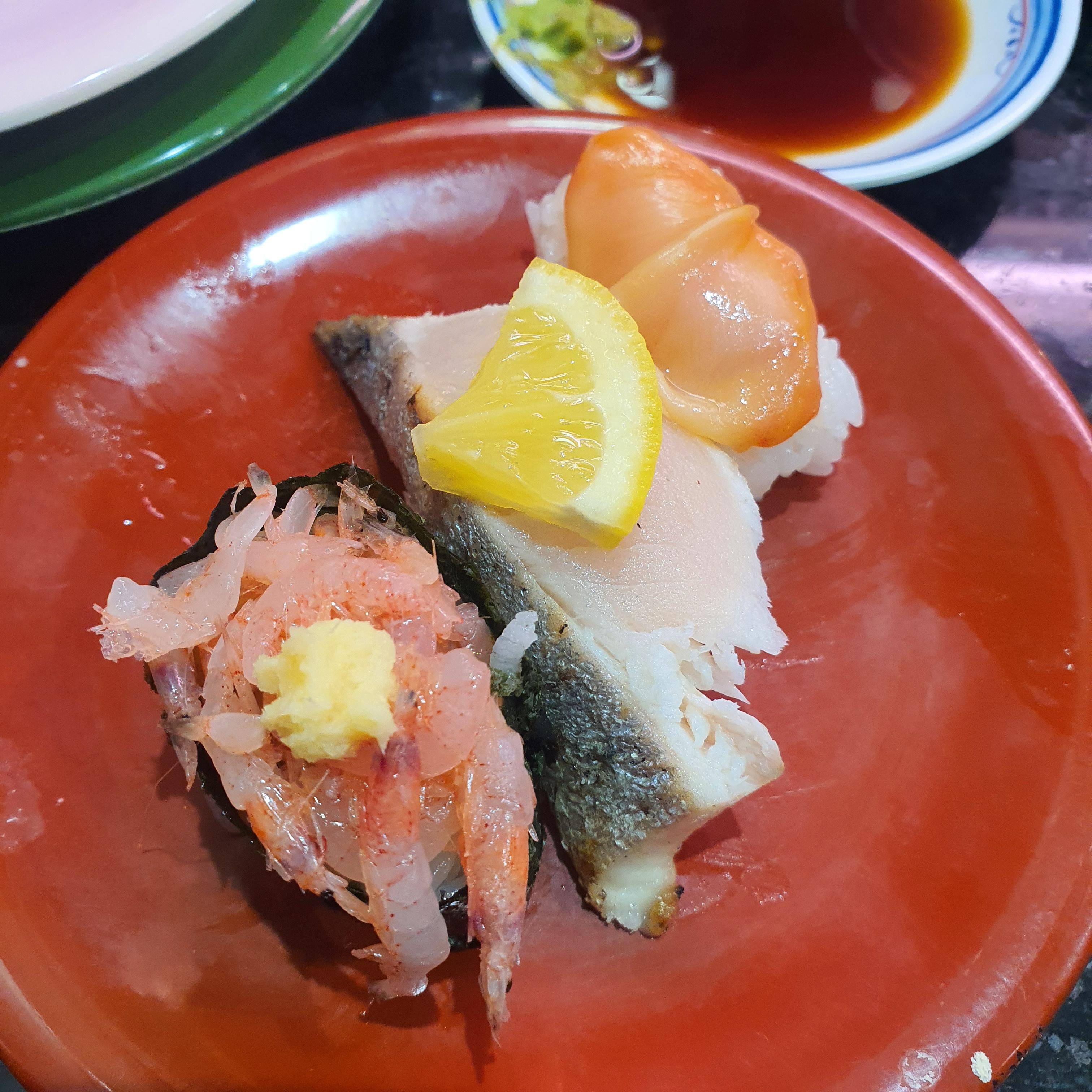 특히 제일 왼쪽 초밥에 얹은 작은 새우들이 너무 신선한 맛이었습니다