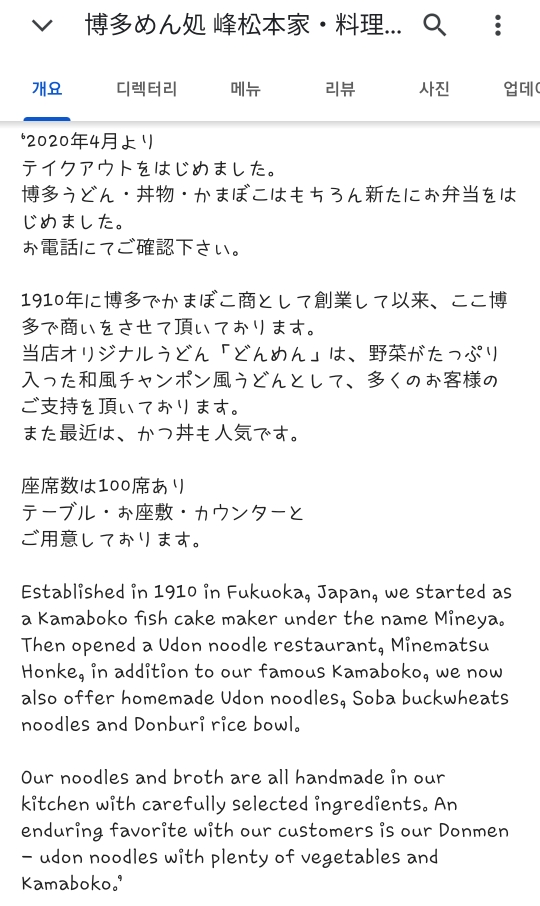 이후 우동전문점인 '미네마츠 혼케'로 탈바꿈하고 카마보코 어묵과 더불어 우동, 소바, 돈부리 덮밥 등을 판매 중이라고 합니다