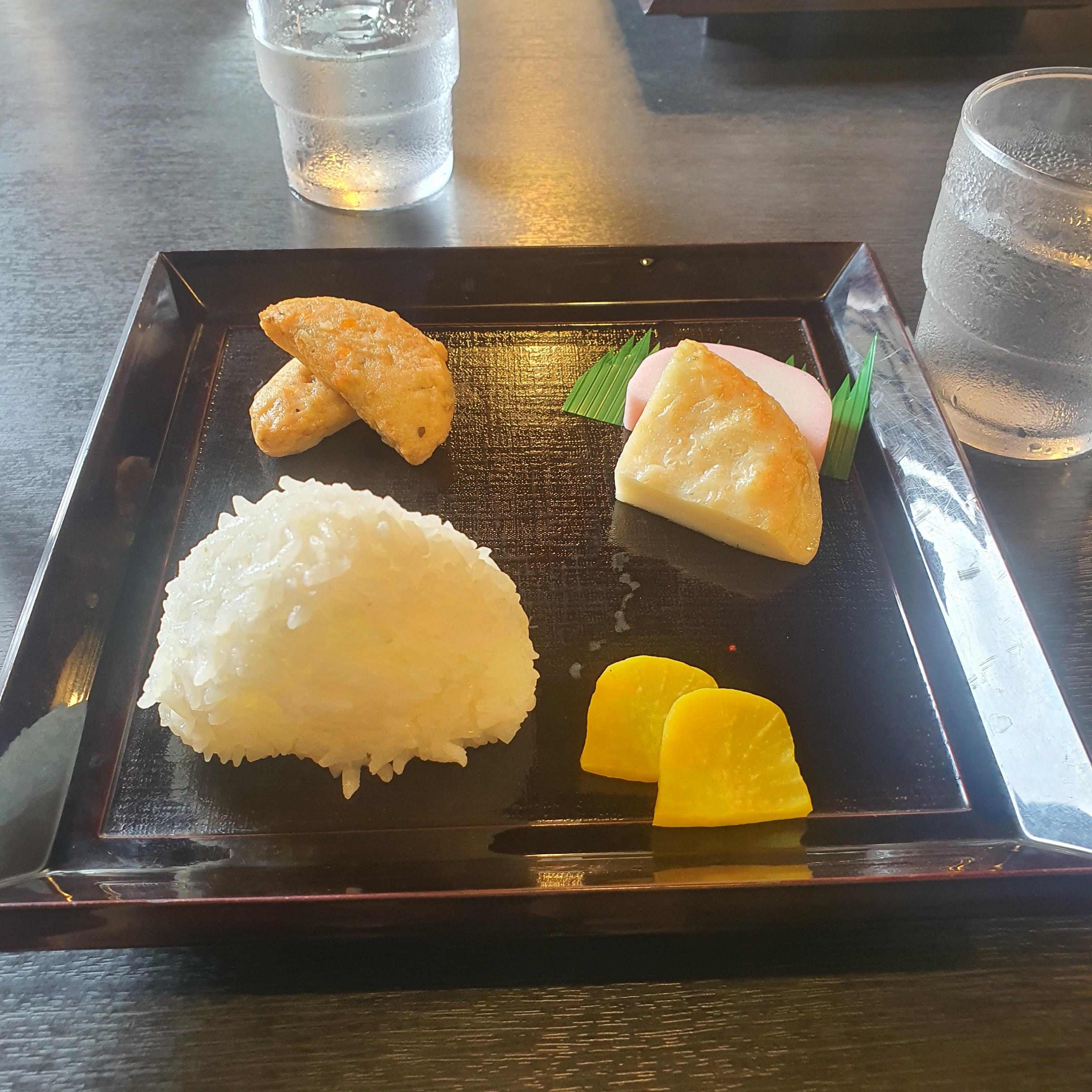 그리고 곁들일 어묵(카마보코)과 밥, 단무지 등이 함께 나옵니다