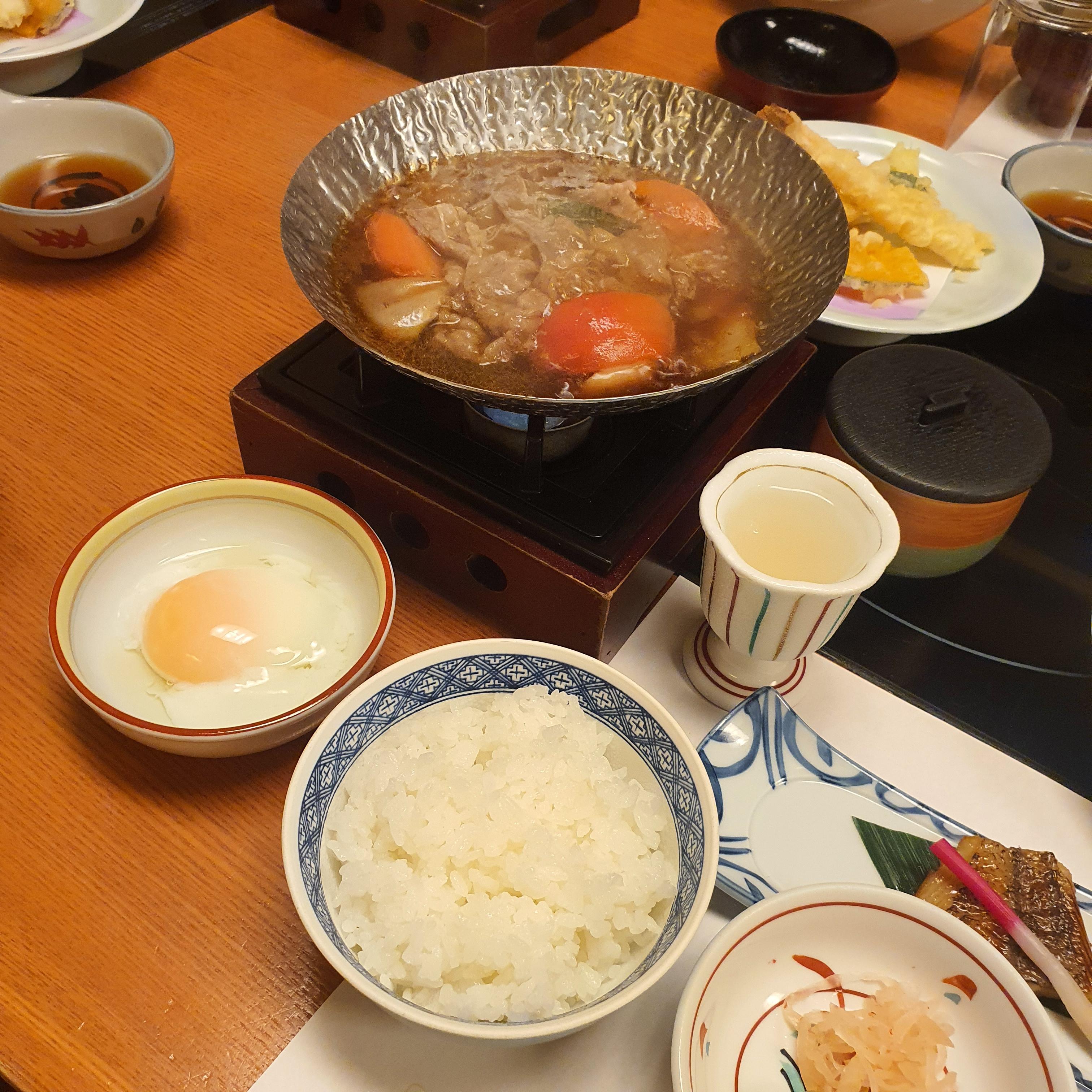가이세키 정식은 이렇게 식사와 더불어 개인별 끓여먹는 냄비도 나옵니다