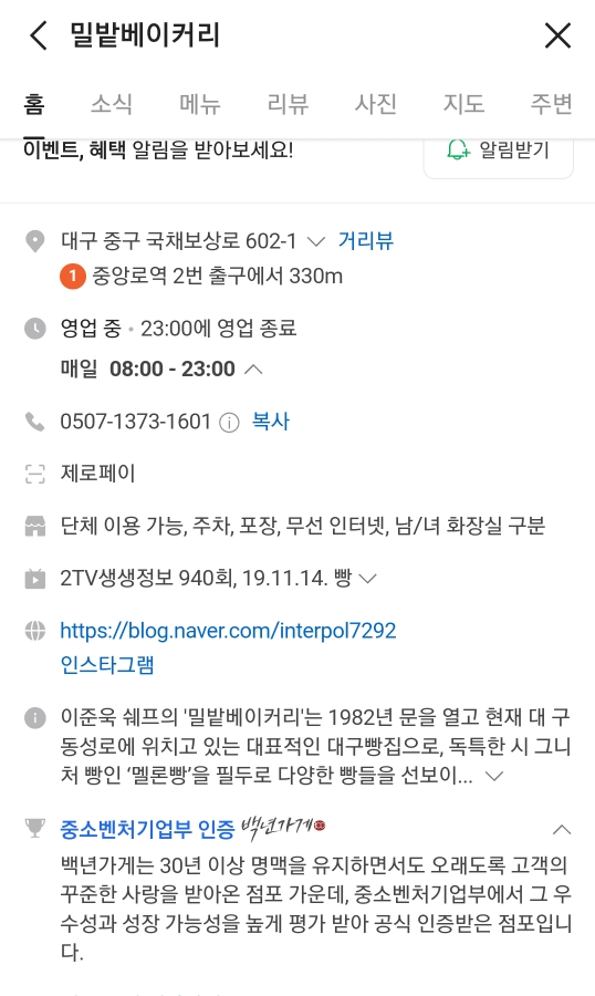 대구 사람들이라면 동성로 인근 중앙로 밀밭베이커리 다들 아실 것 같습니다