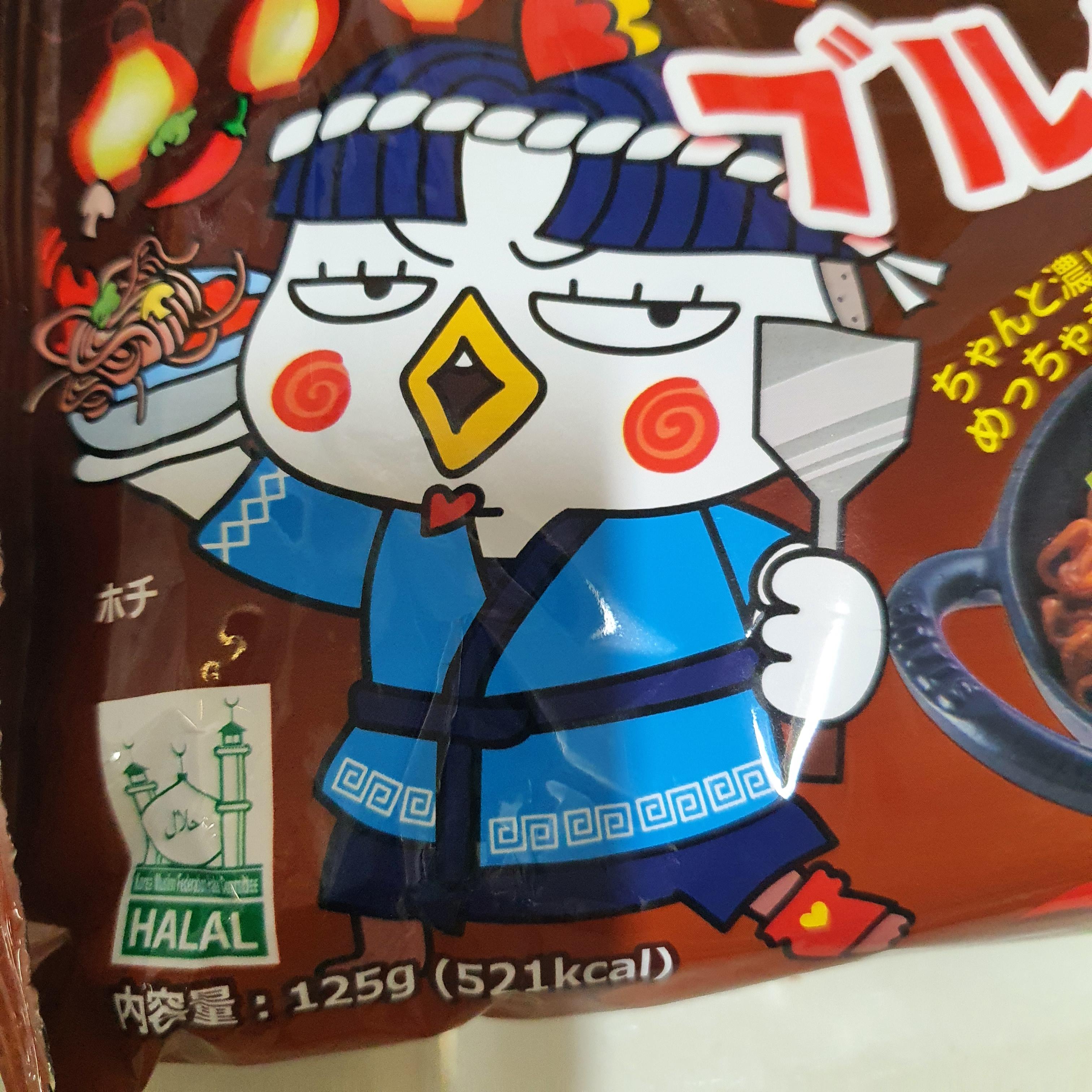 일본 식당에서 이랏샤이마세를 외칠 것 같은 불닭볶음면 캐릭터 역시 일본 상품임을 짐작하게 하는 요소입니다