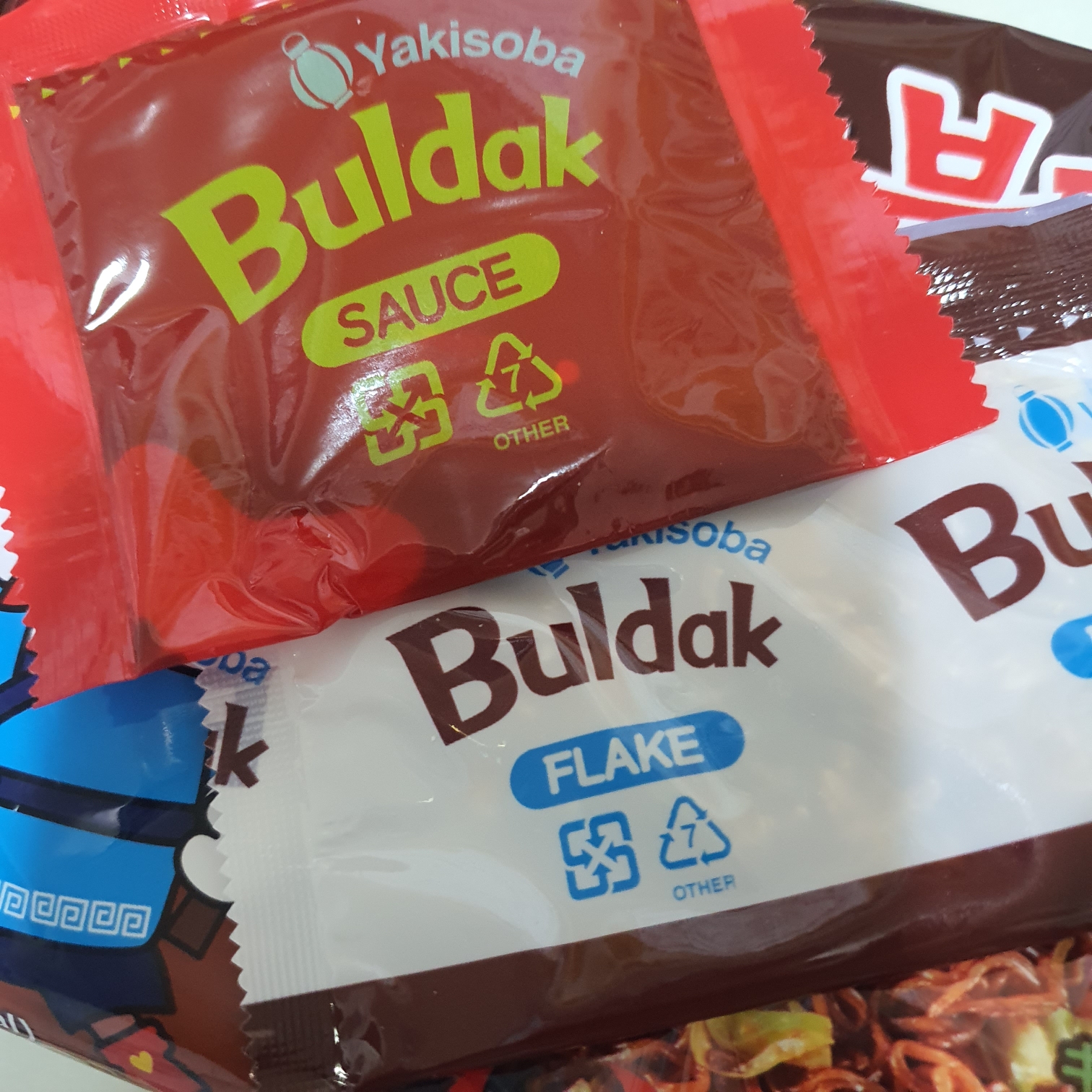 불닭볶음면 야끼소바맛 포장을 열면 이렇게 면과 후레이크, 액상소스가 있습니다