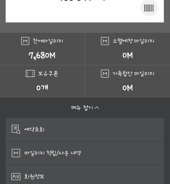 로그인을 하면 잔여 마일리지가 확인되는데요