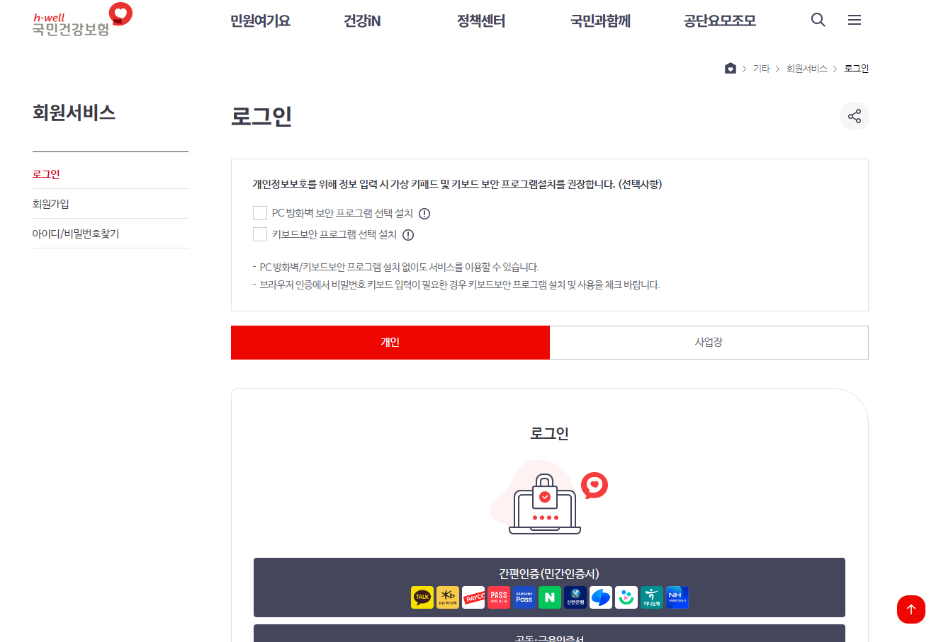 건강보험공단 앱과 홈페이지 이용해