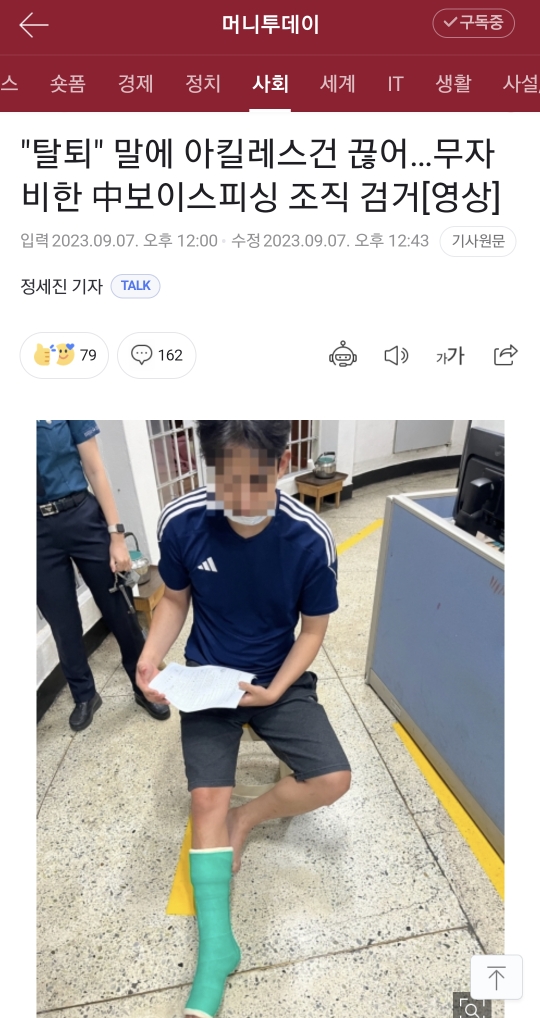 최근 범죄조직의 아킬레스건 파열 관련 기사를 봤습니다