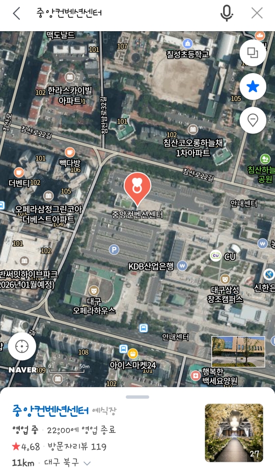 중앙컨벤션센터 웨딩홀은 대구 북구에 있고