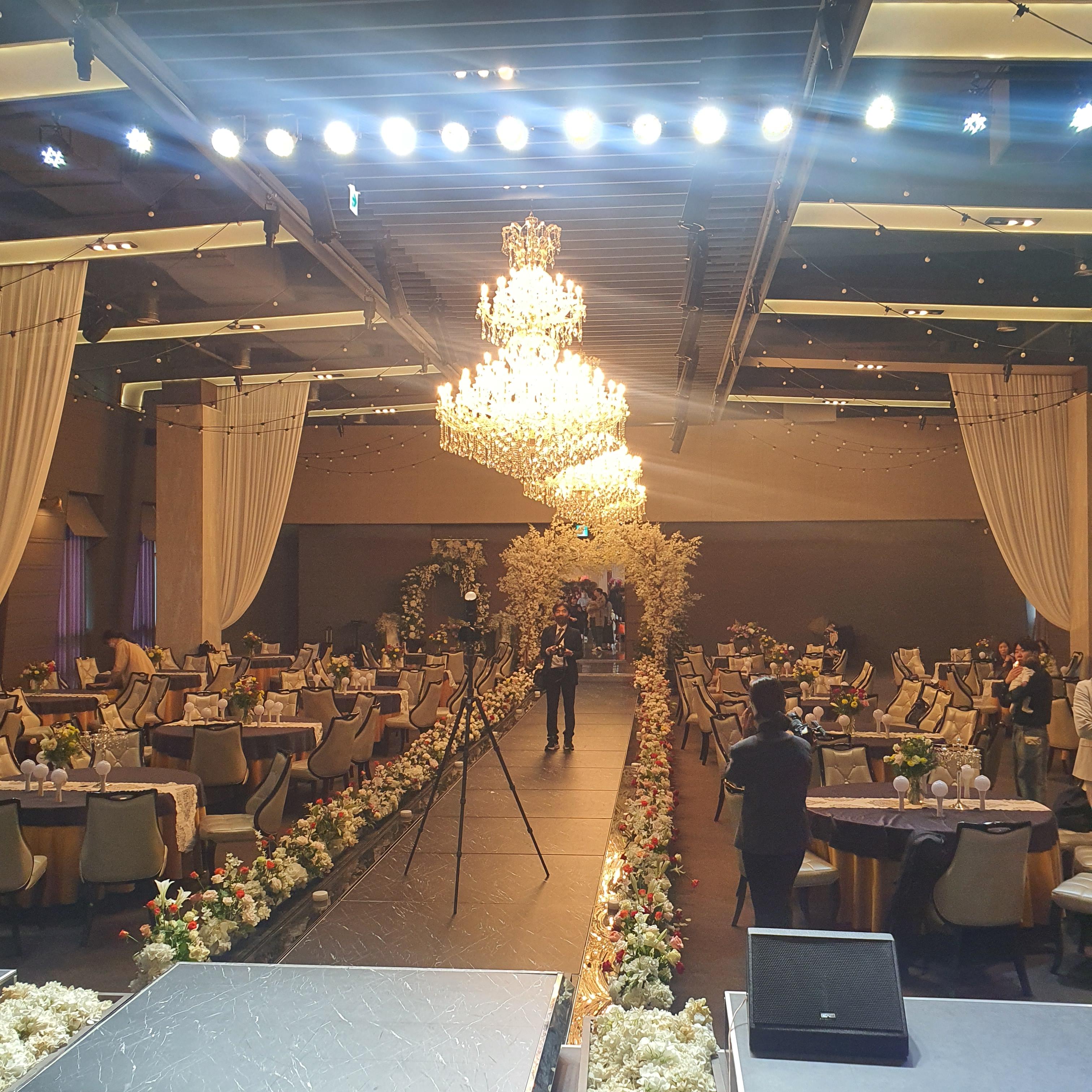 웨딩홀 내부는 어두운 컨셉의 공간입니다