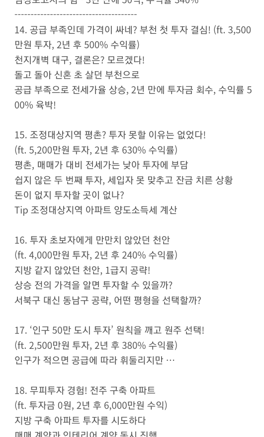 투자는 가장 좋은 물건을 찾는 게 아니라, 내가 투자하기 좋은 단지와 매물 찾는 것