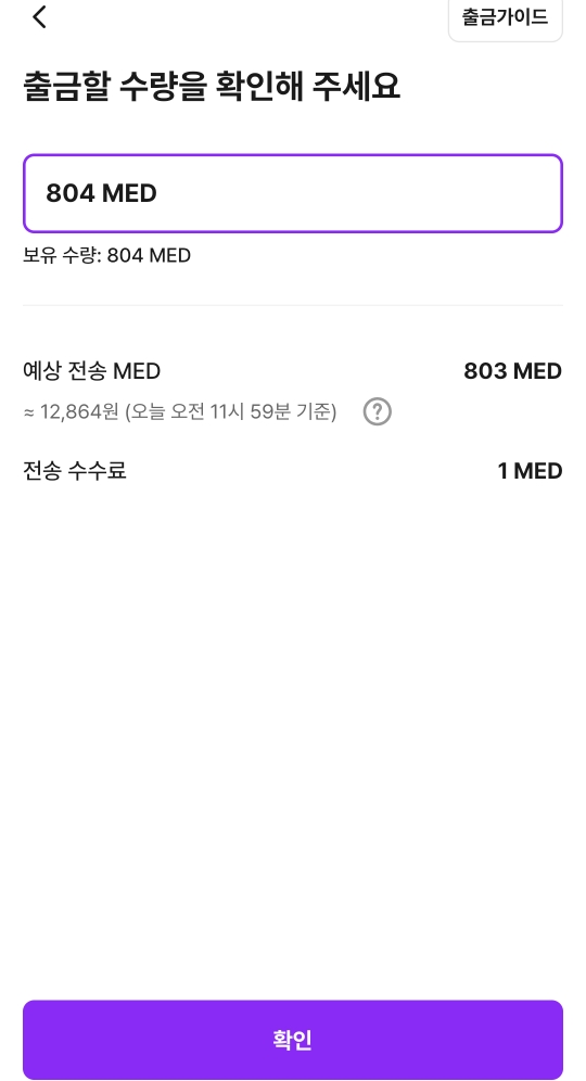 틀린 게 없죠? 803MED 출금에 수수료 1MED