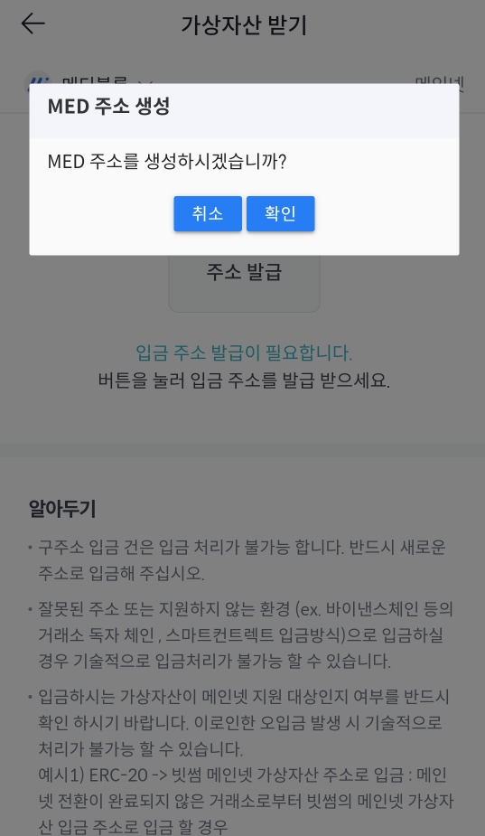이제 MED 코인을 받을 전용 지갑을 만들 준비가 끝났습니다