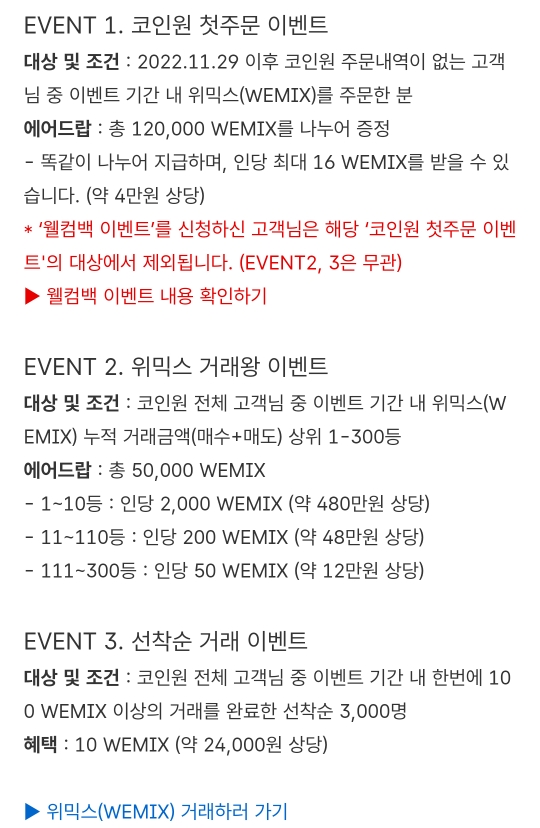 코인원 위믹스 에어드랍 지급 이벤트