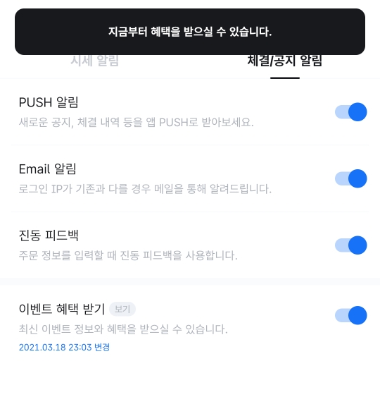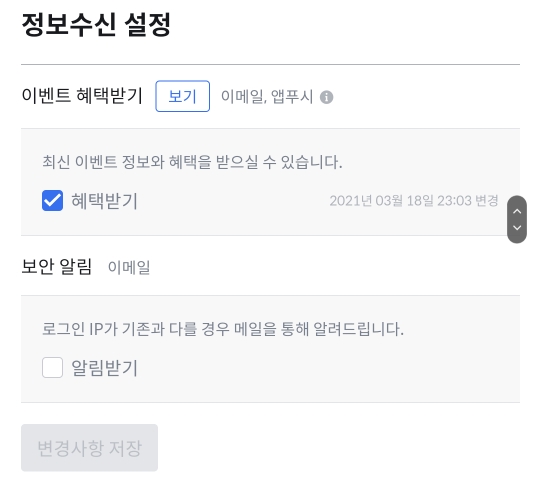 코인원 웹사이트(모바일, 피씨 모두 가능) 접속->마이페이지->이벤트 혜택받기 체크