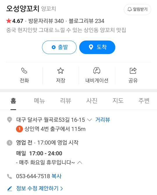 상인동 오성양꼬치 리뷰