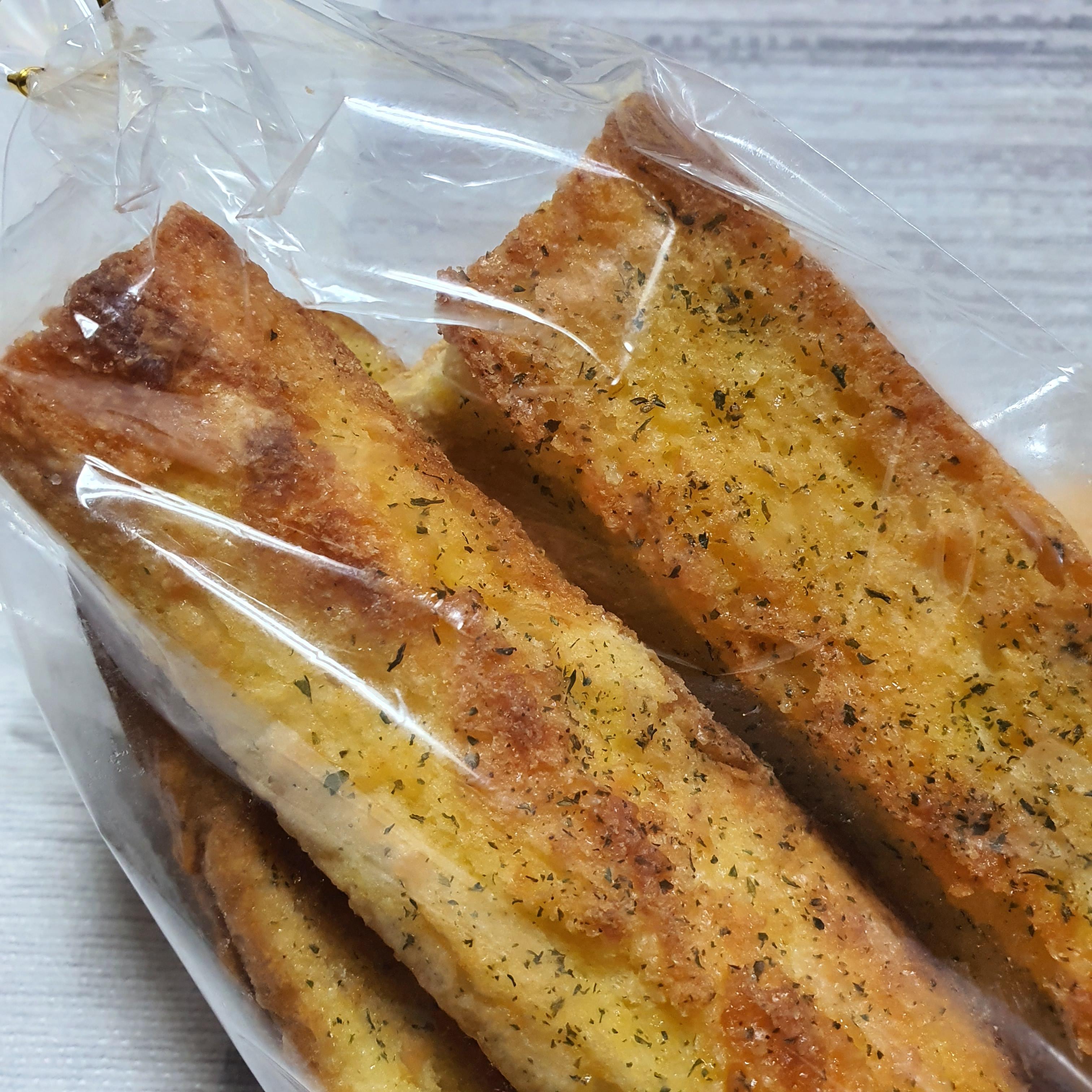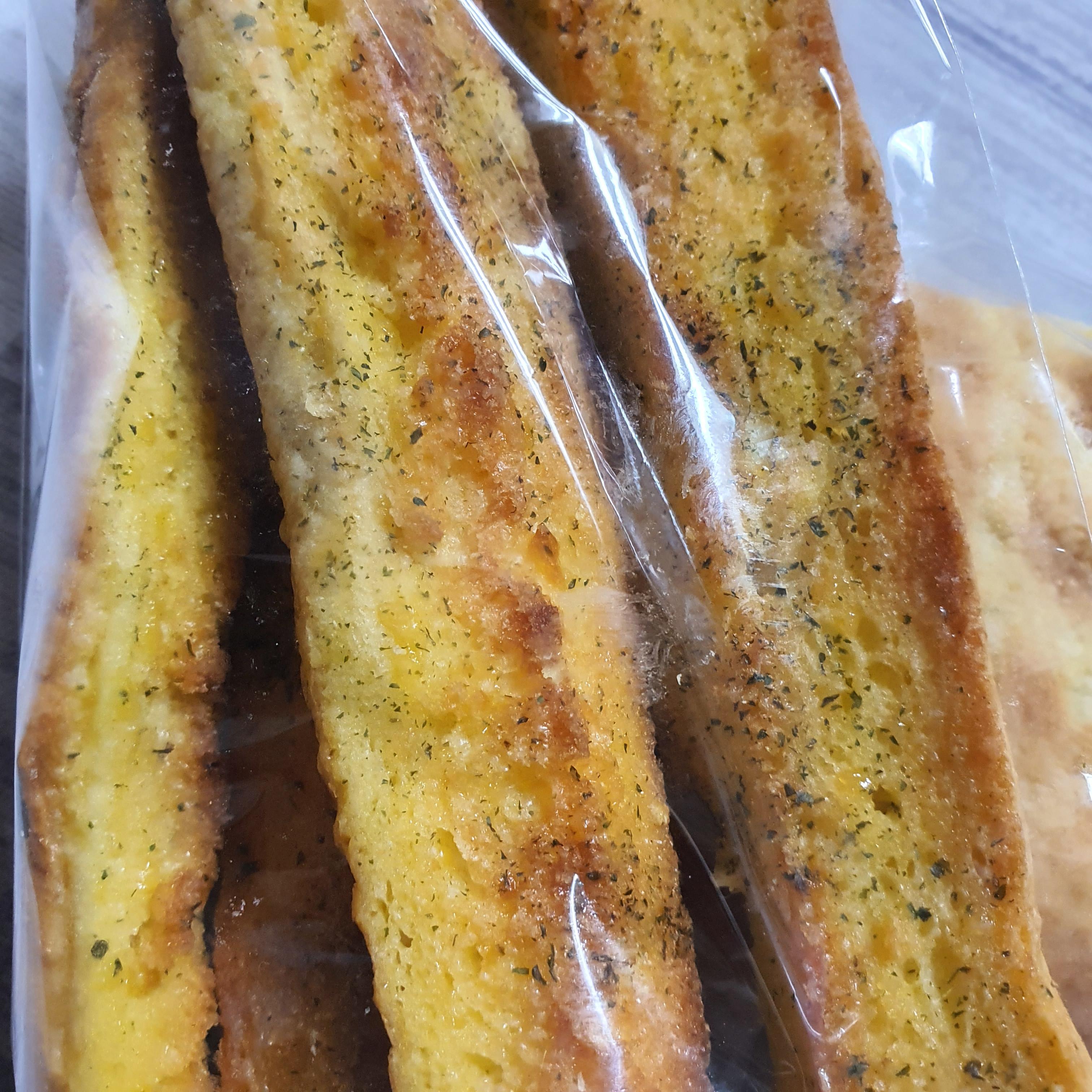 길게 자른 바게트에 달달한 마늘빵 소스를 발라 구운 것인데 맛있습니다