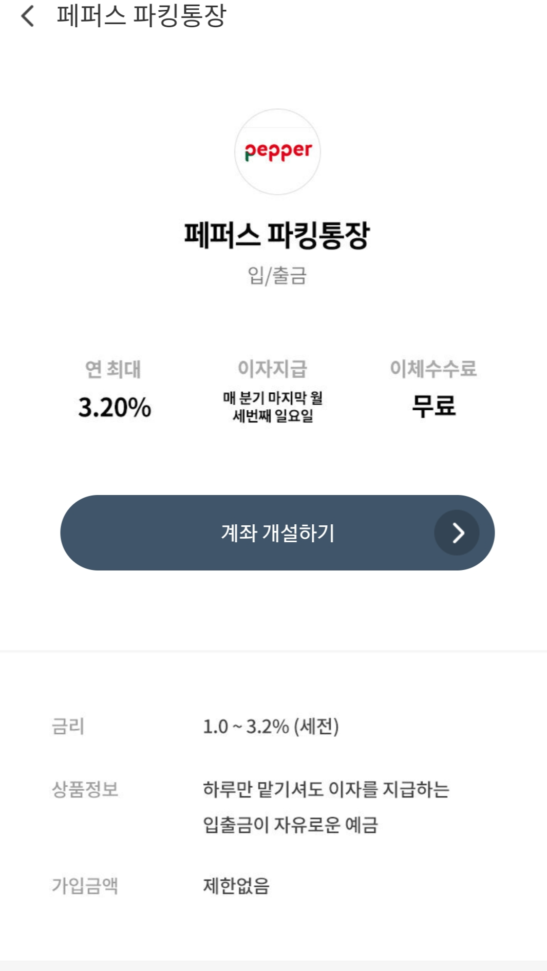 이 중에서도 페퍼저축은행 파킹통장의 금리는 연 최대 3.2%로,