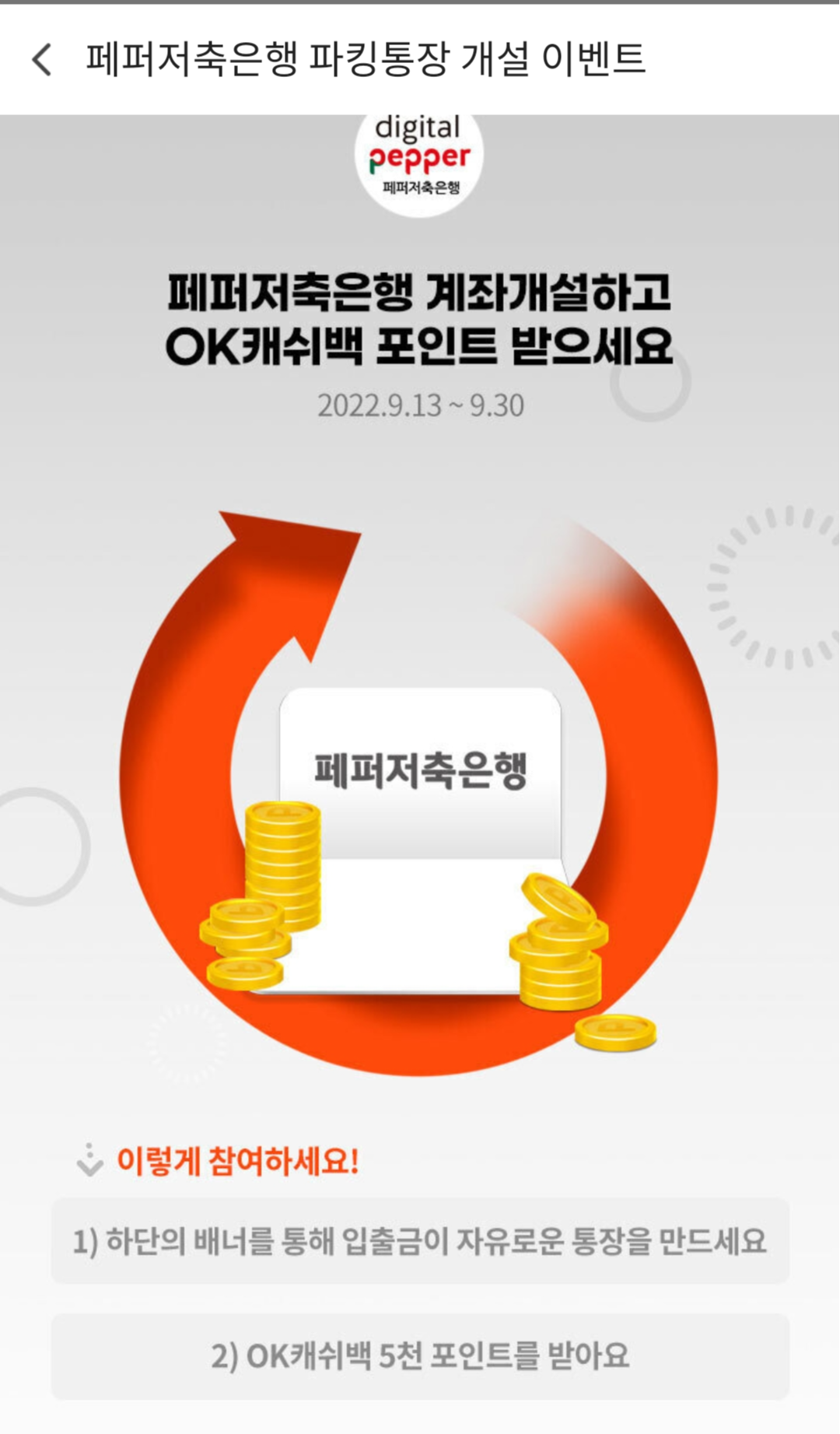 저희는 '페퍼스 파킹통장 개설 이벤트' 링크를 클릭해야겠죠