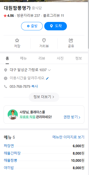 대원짬뽕명가는 대구 가창 용계리에 있는 중식당입니다