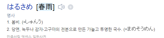 이 춘우라는 것이 일본어로는 '하루사메', 즉 당면류를 일컫는 말인 것 같습니다