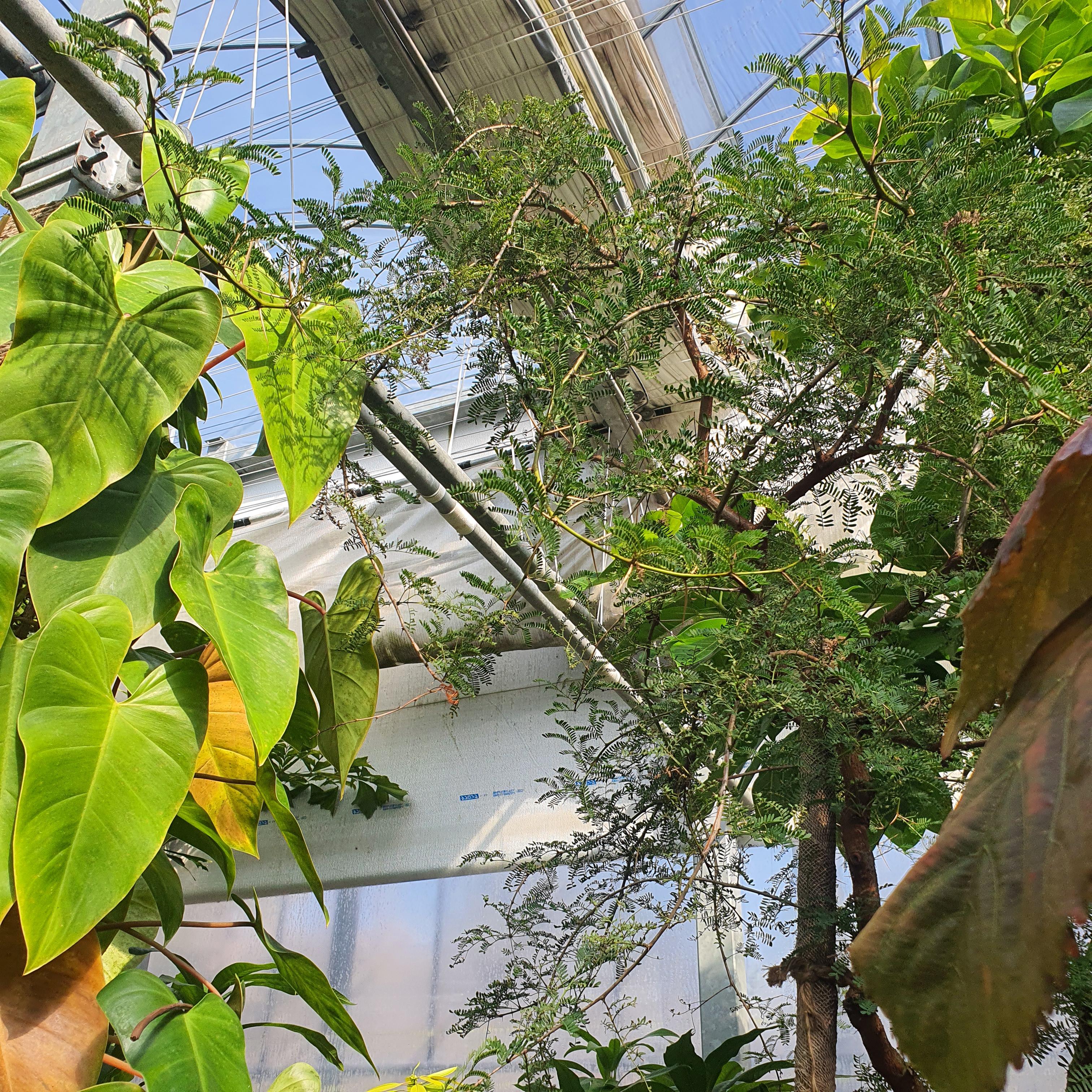 하우스 안에 식물들이 빽빽합니다