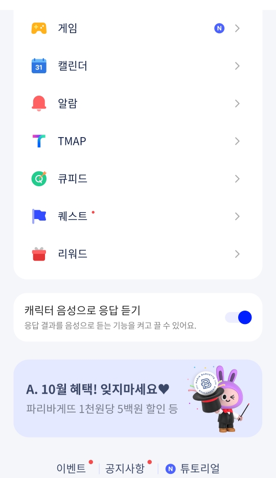 2. 가입 후 인공지능 캐릭터가 나오는 메인화면이 보입니다