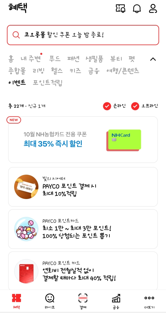 2. 메인화면 검색창 아래 키워드 중 '이벤트' 클릭