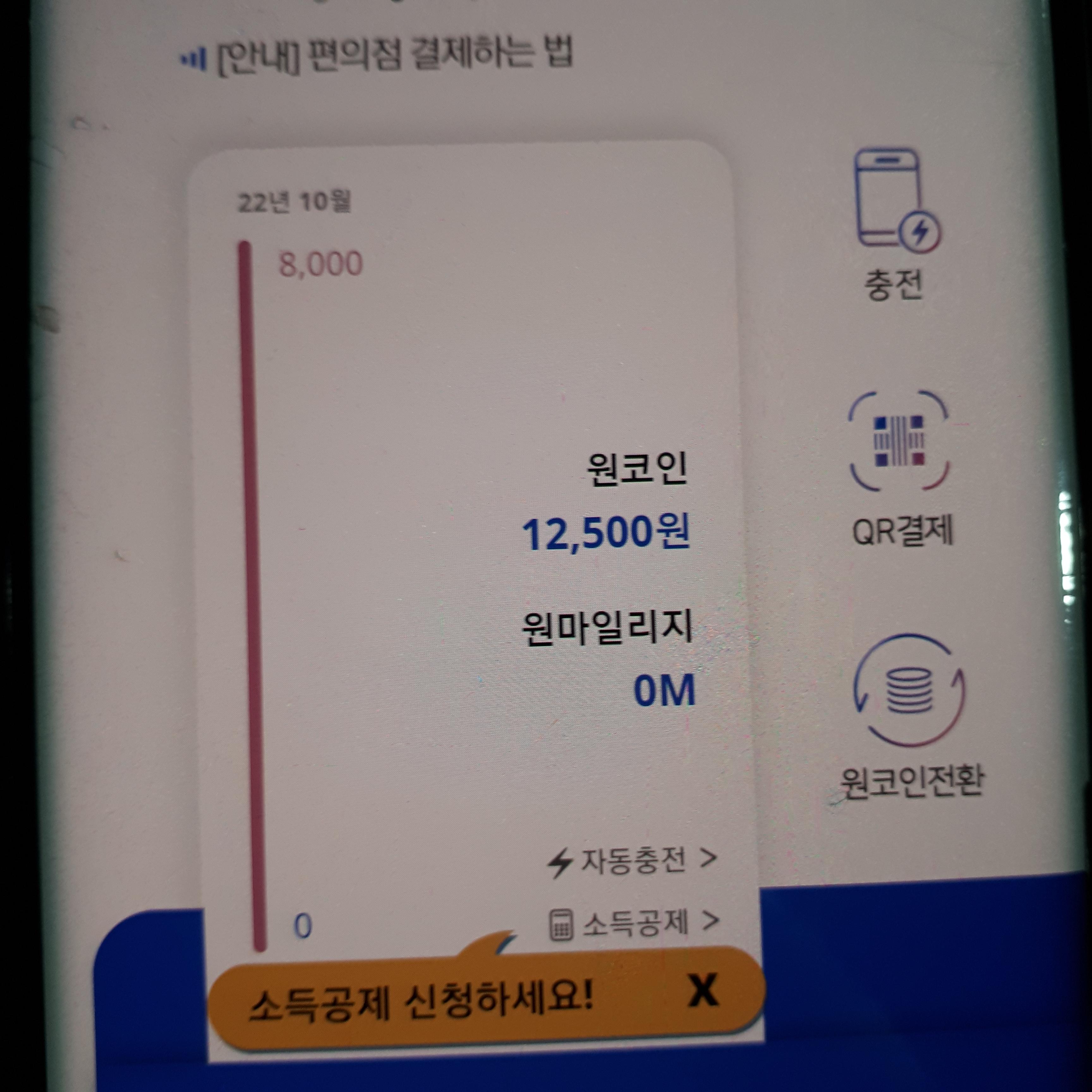 1000원단위로 충전 가능한 원패스