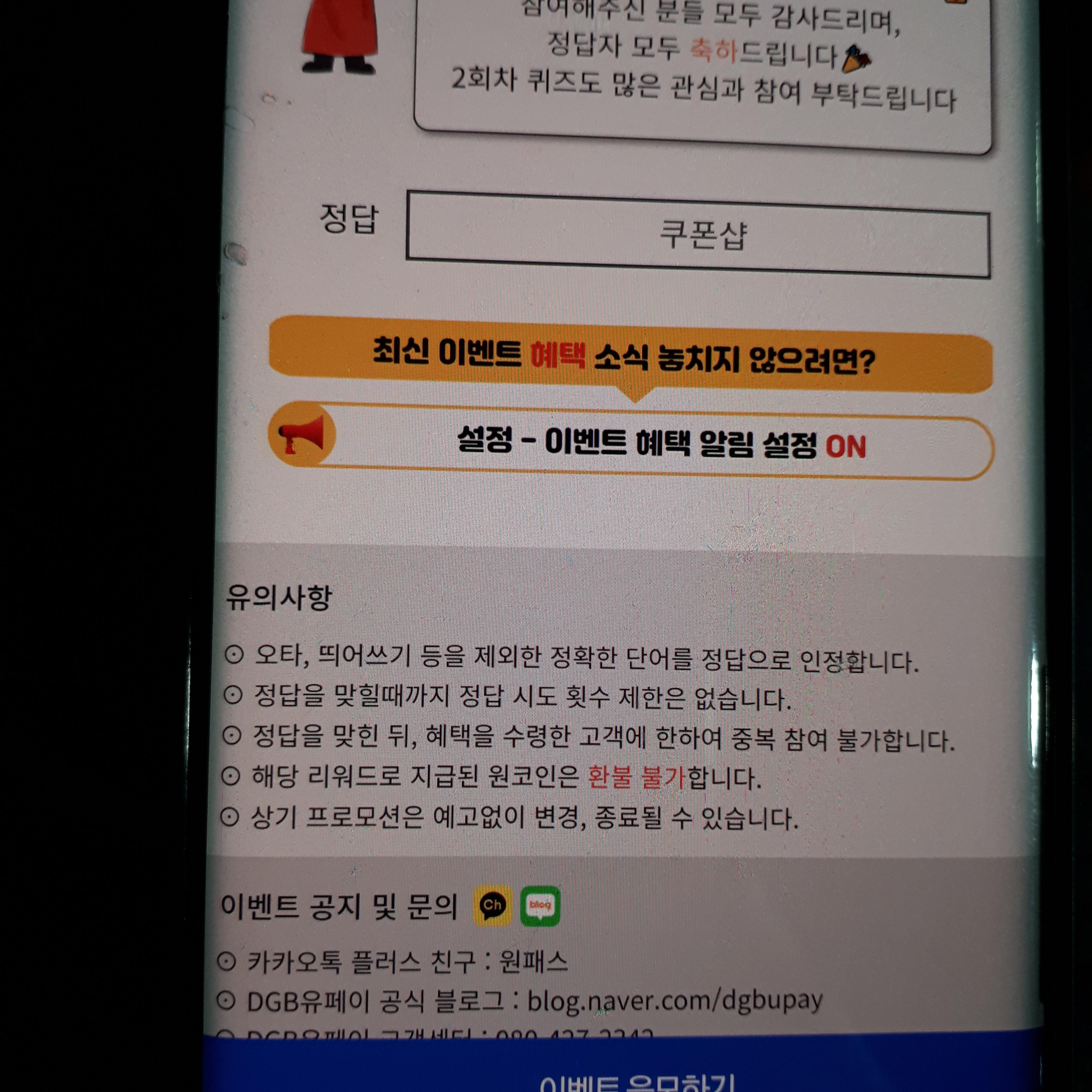 DGB유페이 원패스 ㅋㅍㅅ 퀴즈 정답