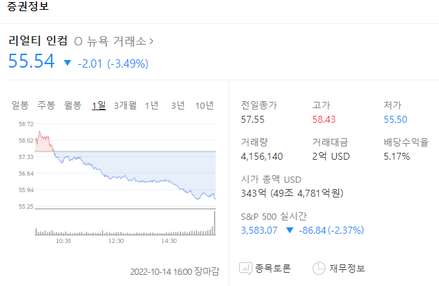 부동산 관련 리츠주 증권인 리얼티 인컴의 티커는 한 글자 O(알파벳 '오')입니다