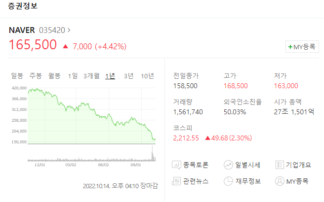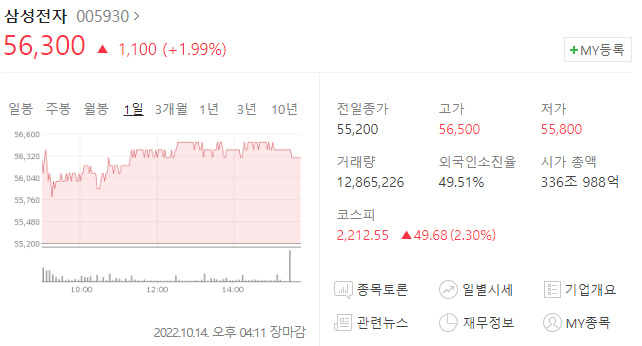 네이버에 삼성전자를 치니 관련 증권 주식정보가 나오는데요
