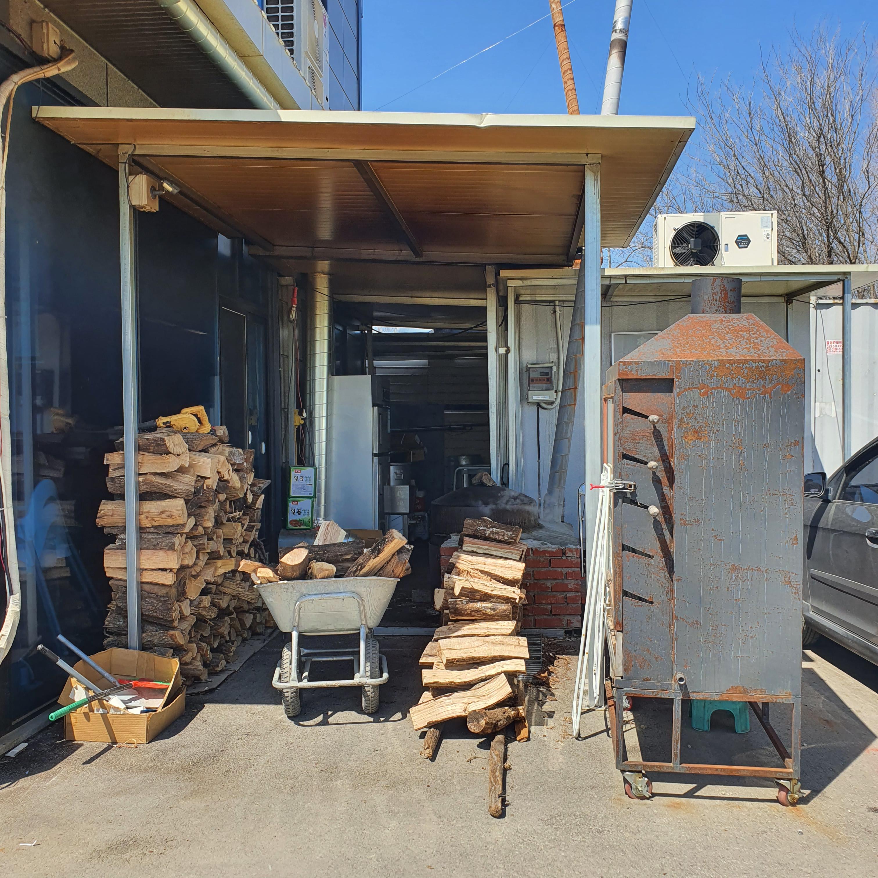 정말 점심식사 때 펄펄 끓고 있는 국밥과 거기에 사용되는 장작을 볼 수 있었습니다