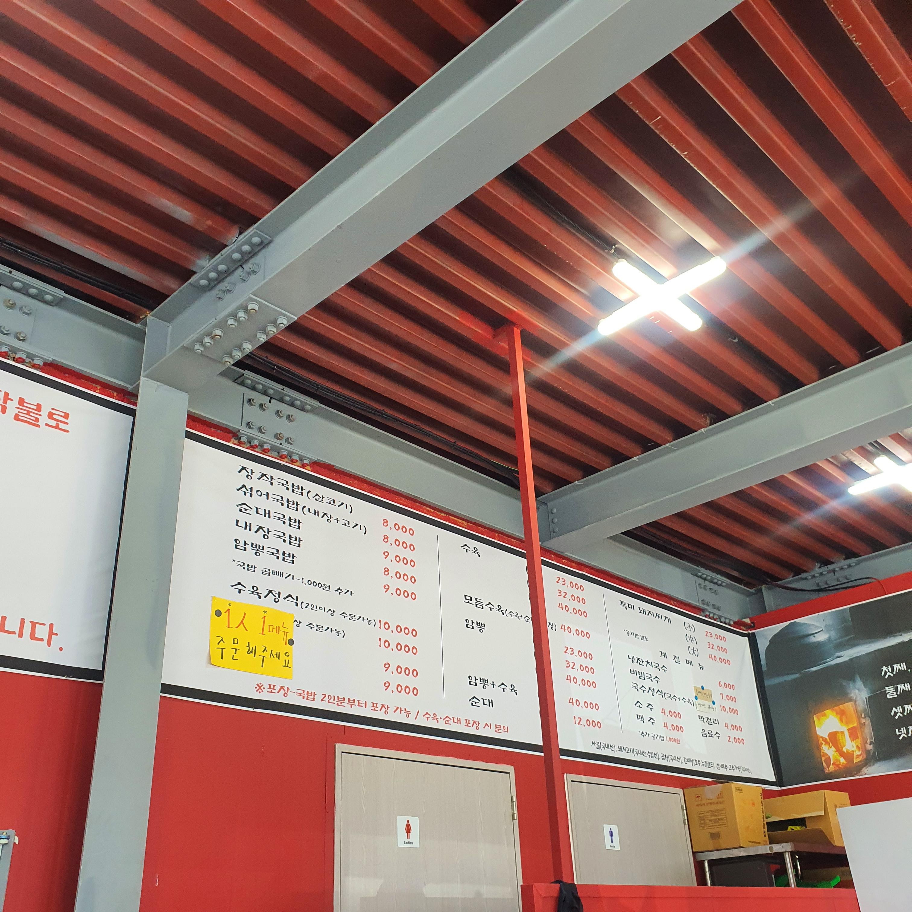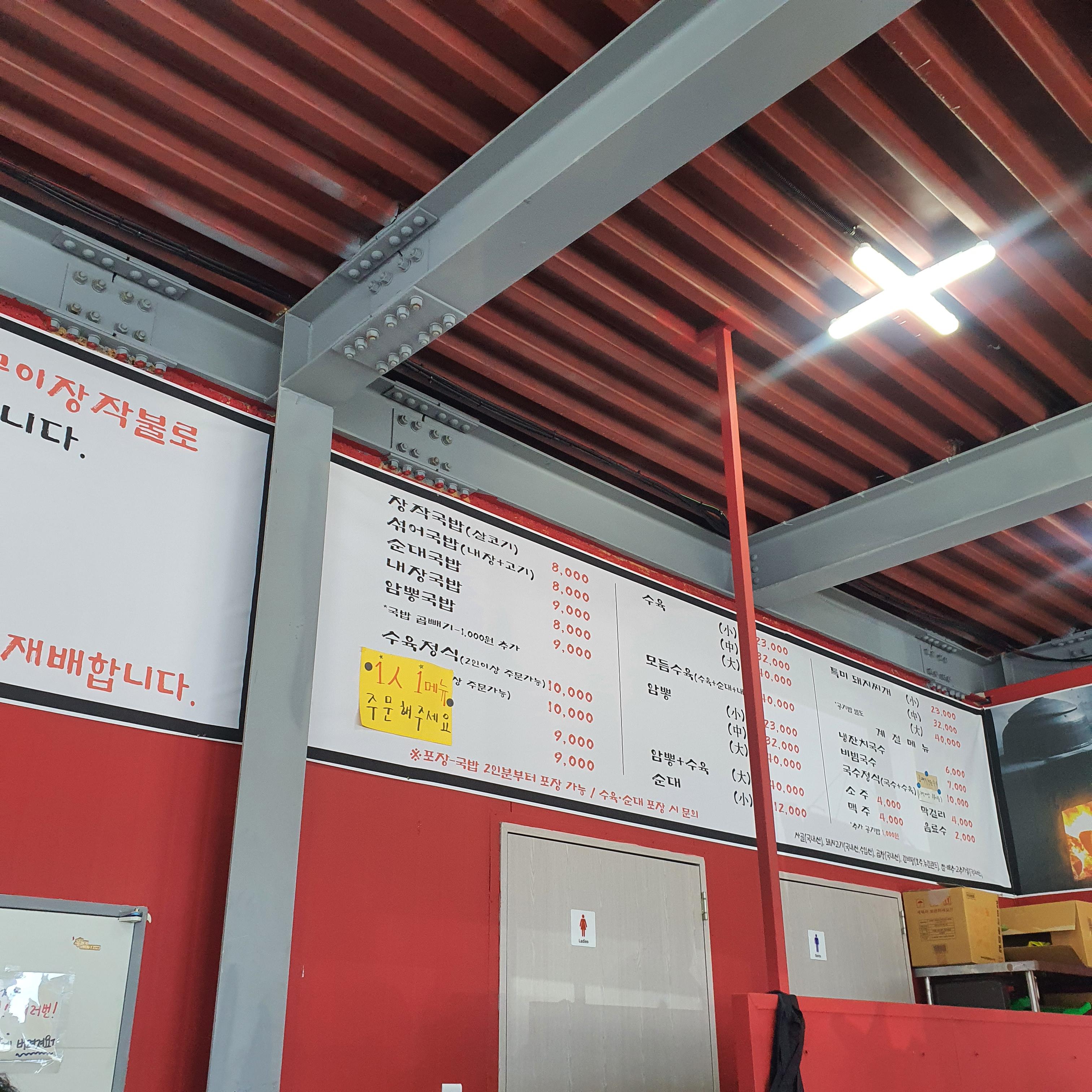 화원읍 장작국밥 메뉴입니다