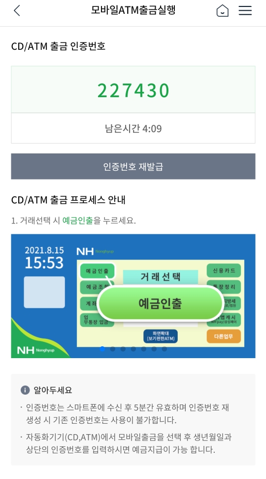 이제 이 번호를 이용해 atm에서 거래하면 됩니다