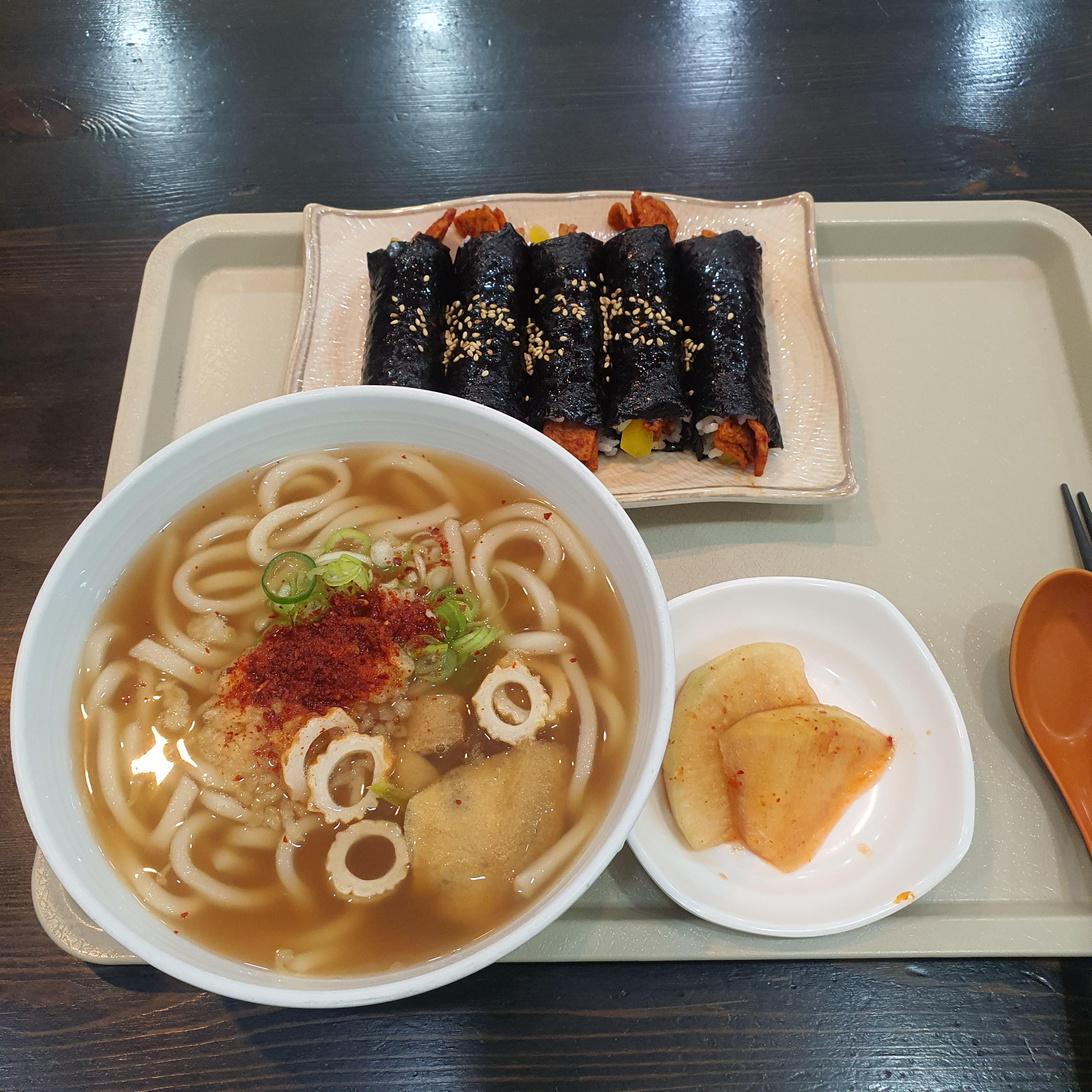 제가 주문한 꼬마김밥과 우동이 나왔습니다