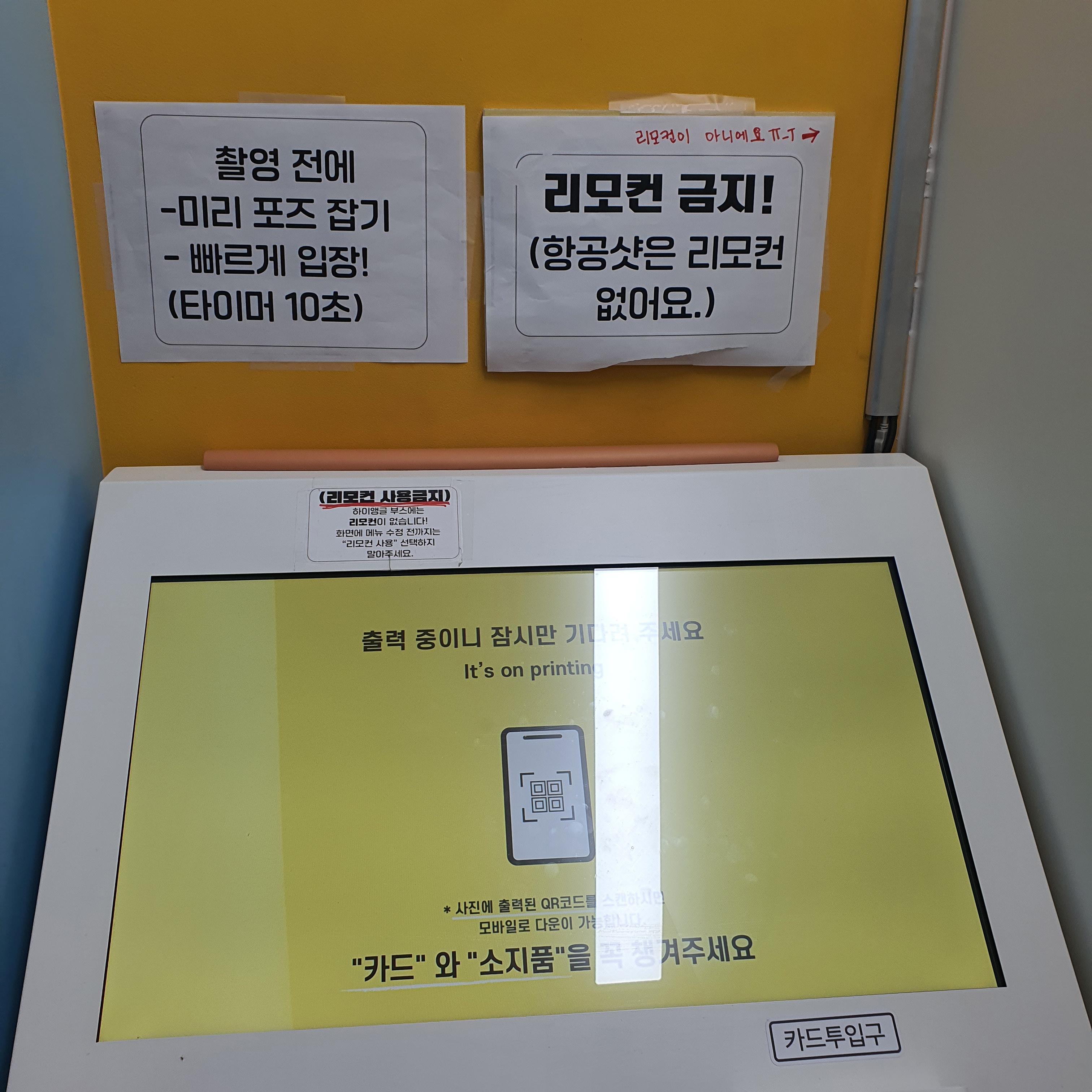 결제 및 사진 선택 기계가 있는 공간/포토부스가 분리되어있습니다