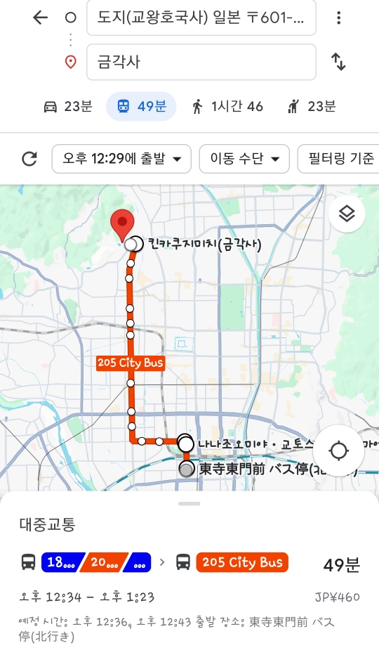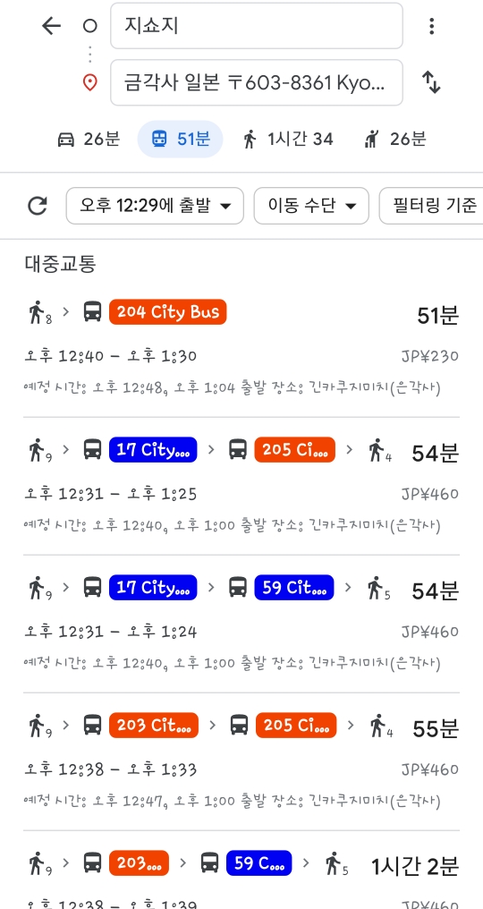 예를들어 지쇼지에서 금각사를 오간다고 하면 위 경로를 따라 다니면 되겠죠?