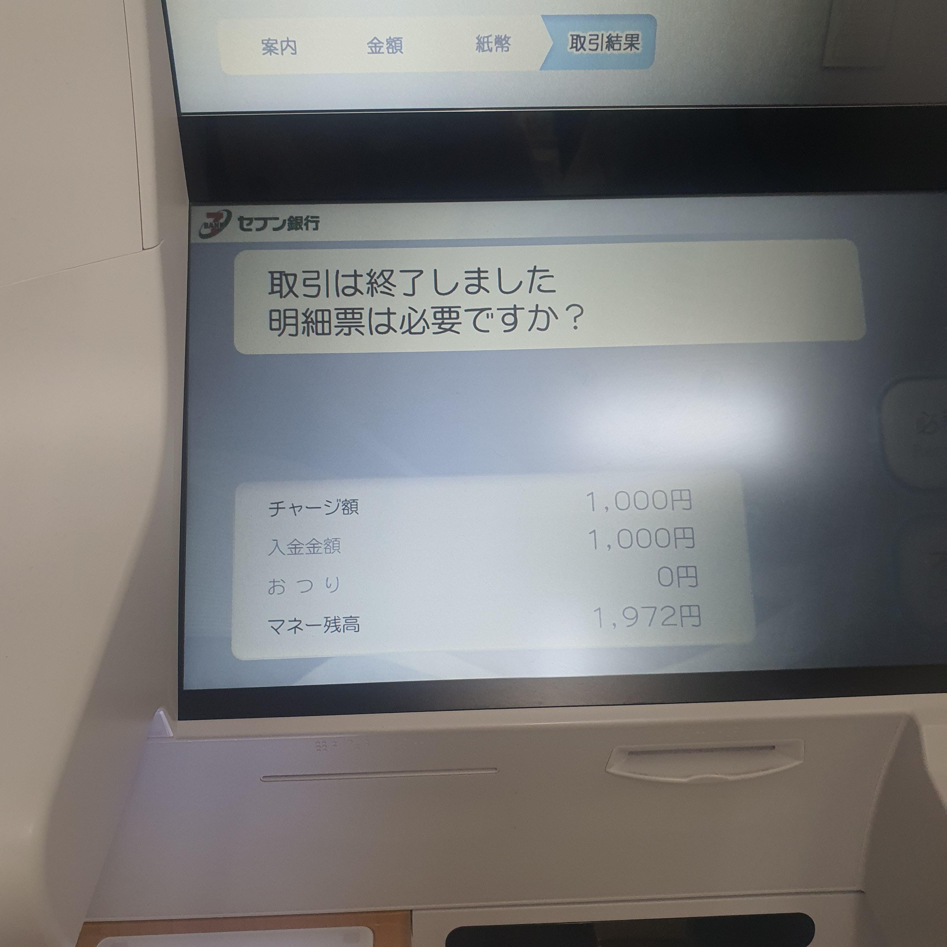 저는 1000엔만 충전했습니다