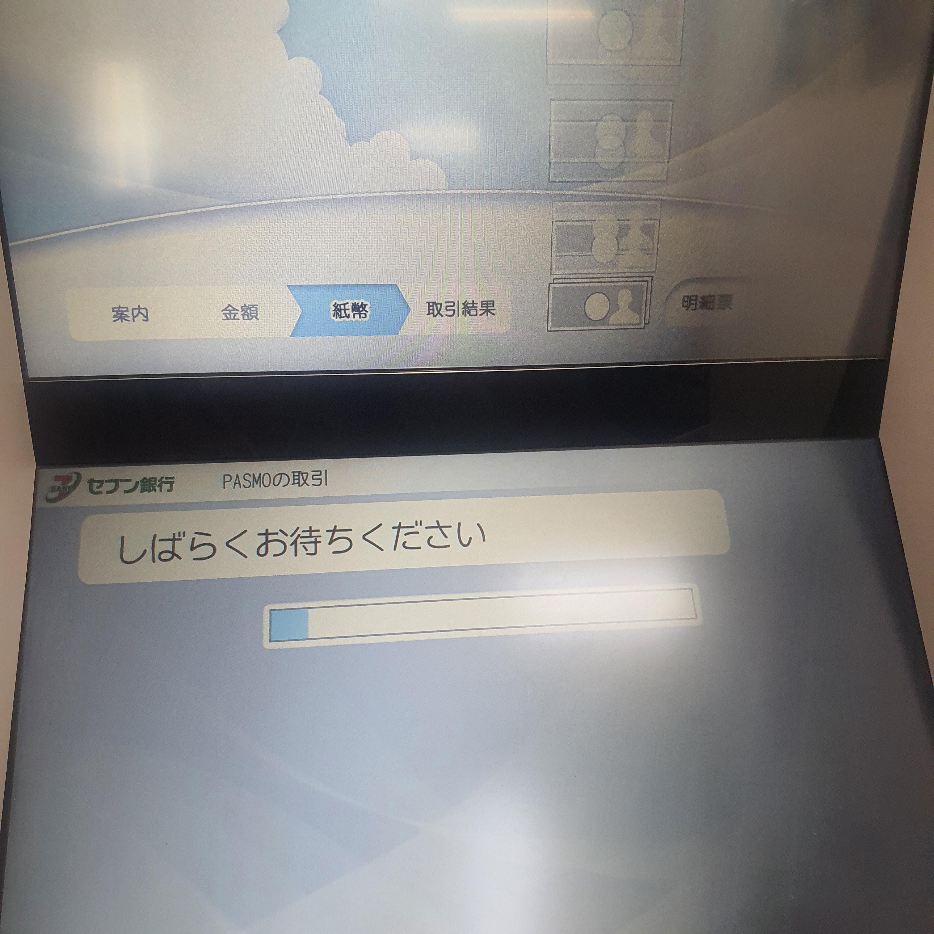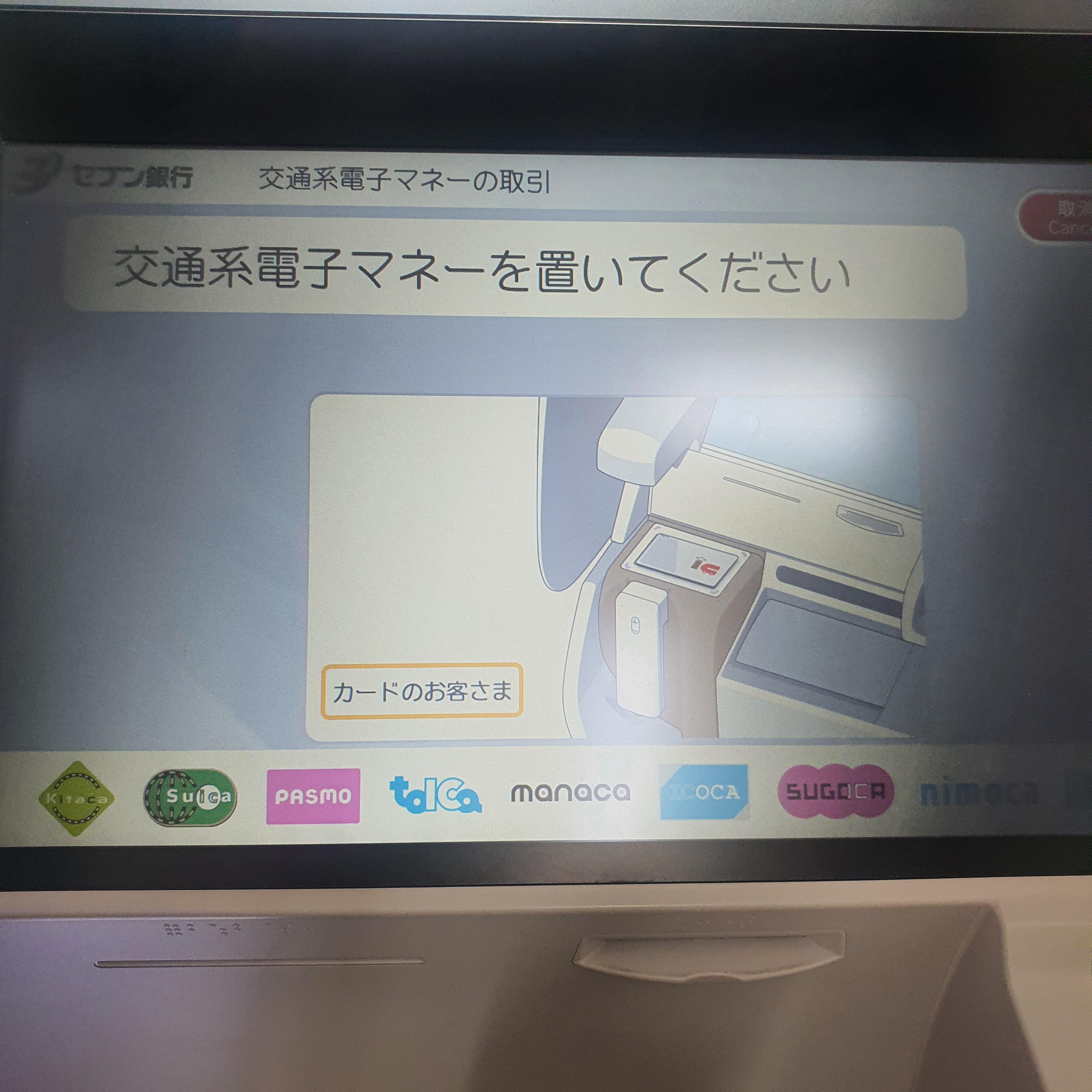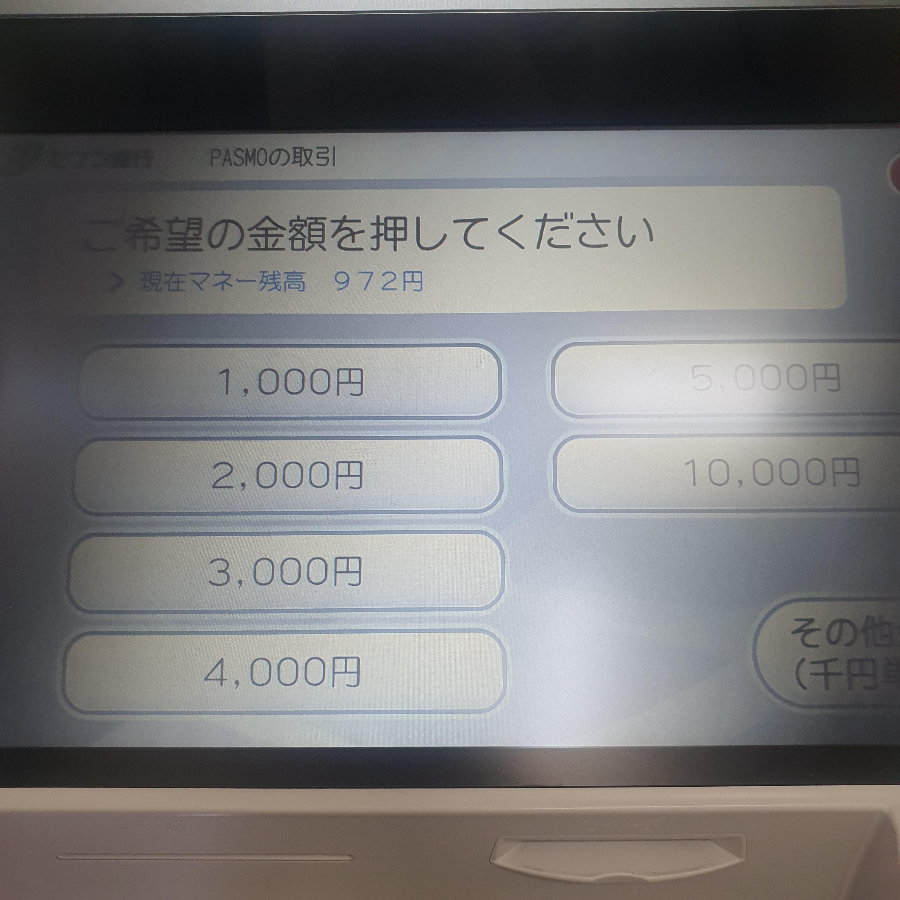 일단 atm기에 파스모 교통카드를 올려둡니다